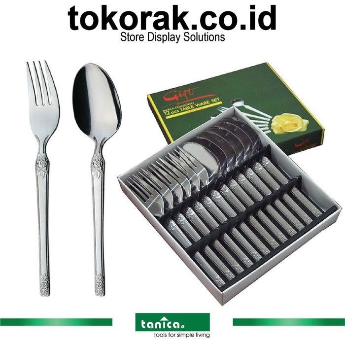 TANICA FLORA SENDOK GARPU SET 12 PCS STAINLESS STEEL SENDOK MAKAN