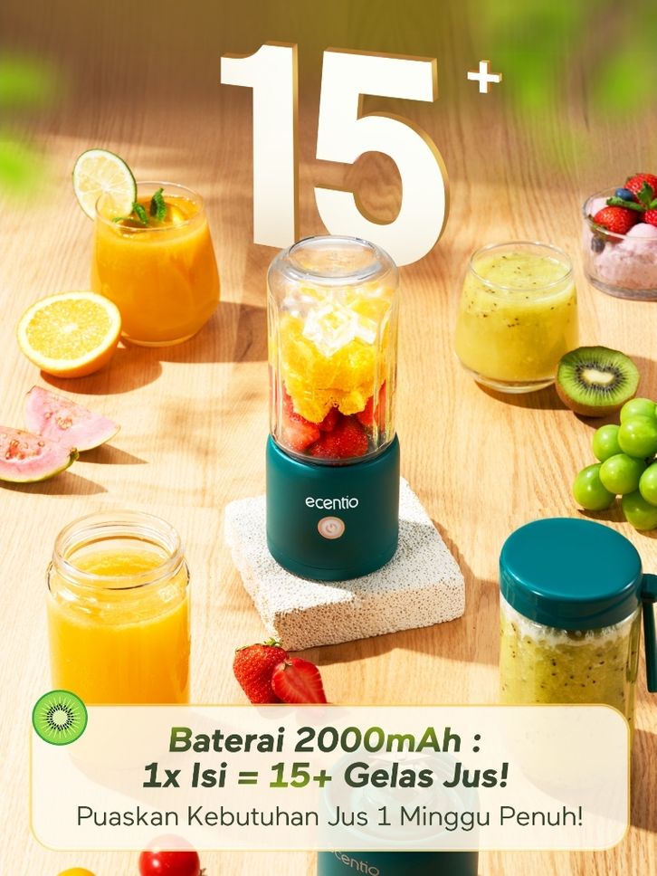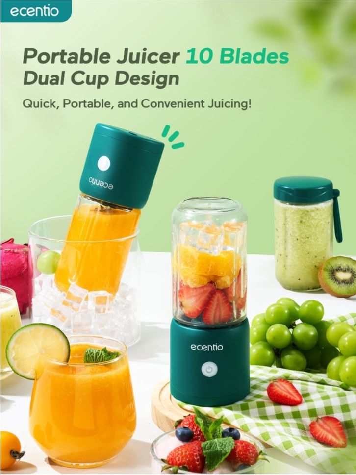 Ecentio Juicer 8 Mata Pisau Blender Kapsul 2 Kaca Gelas Juicer Portable Juicer Buah Tanpa Ampas Blender Jus Buah Blender