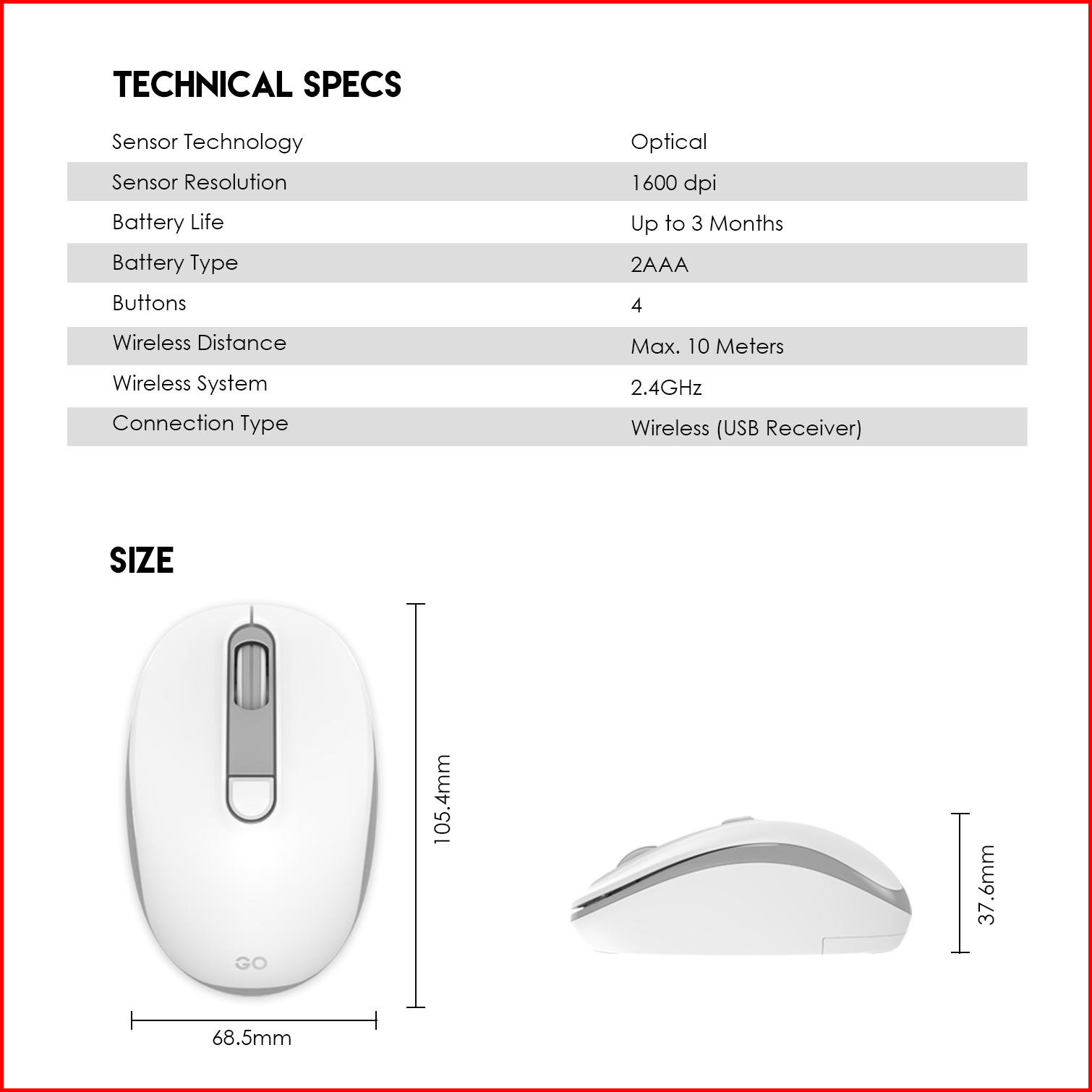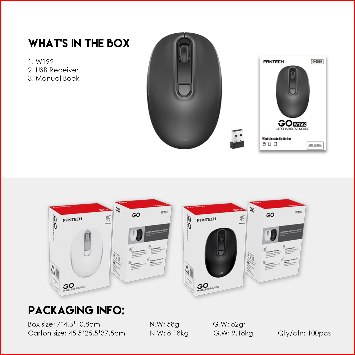 Mouse Wireless Office Fantech Go Silent Click 2.4ghz 1600dpi