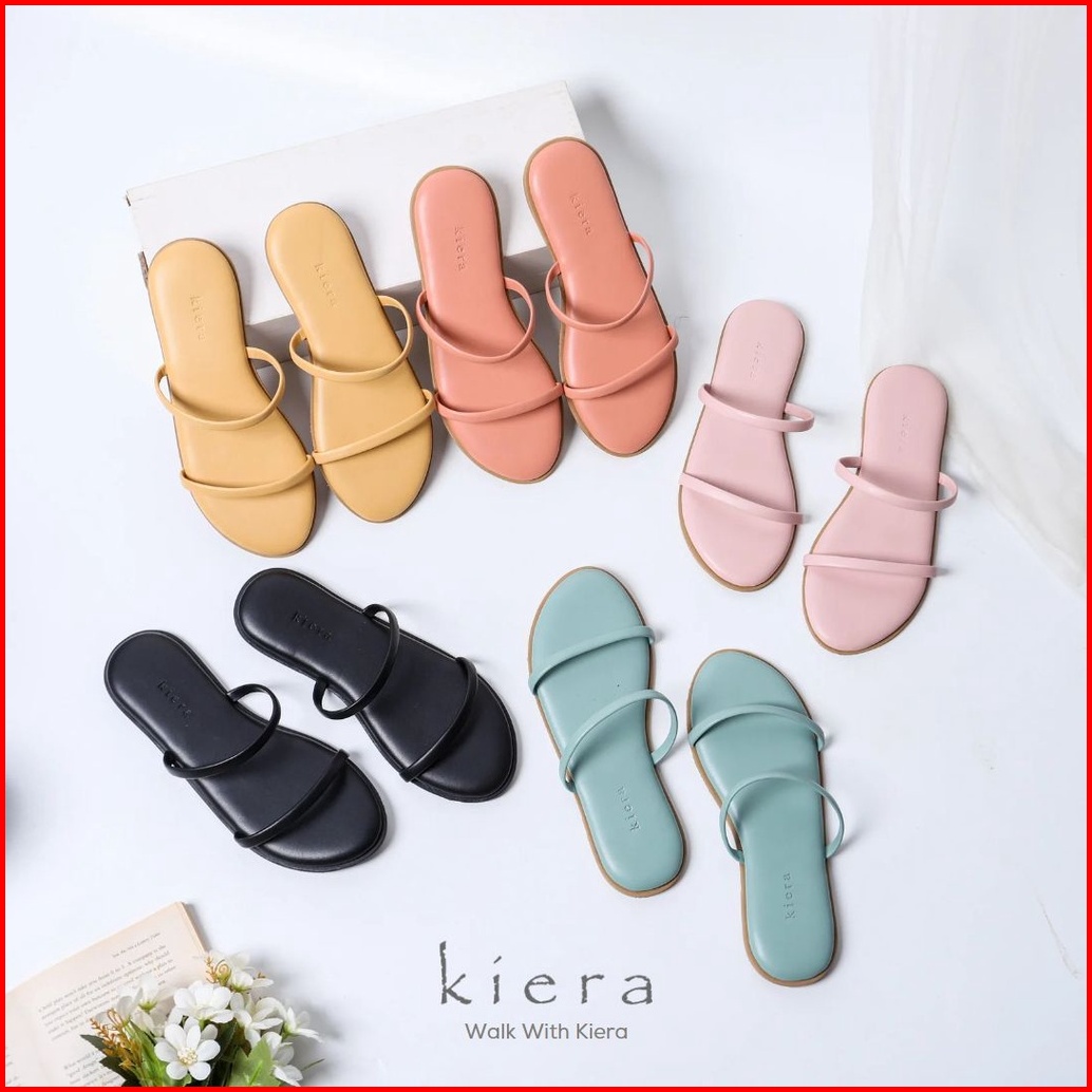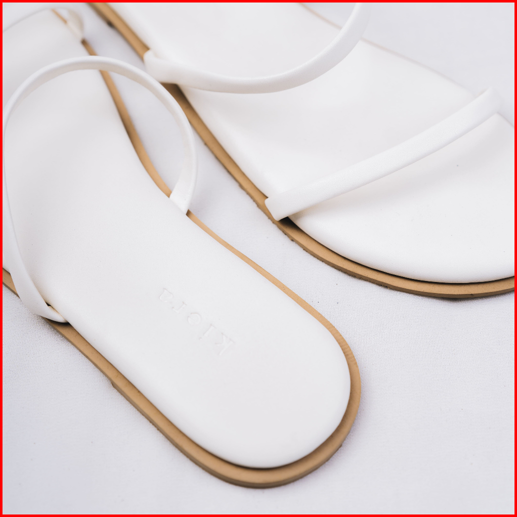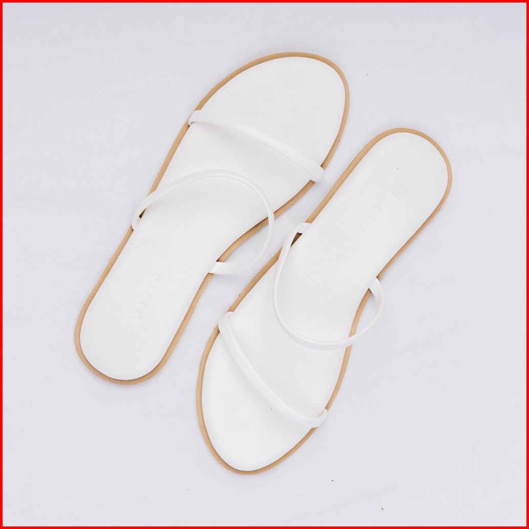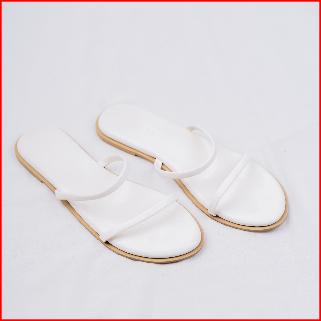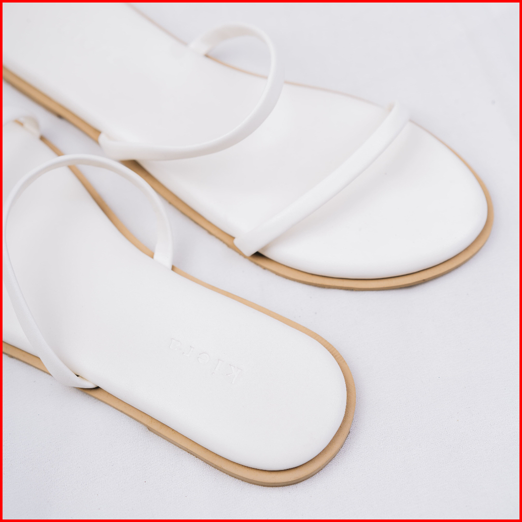 Kiera Sandal Wanita Flat Sandy White Kulit Sintetis