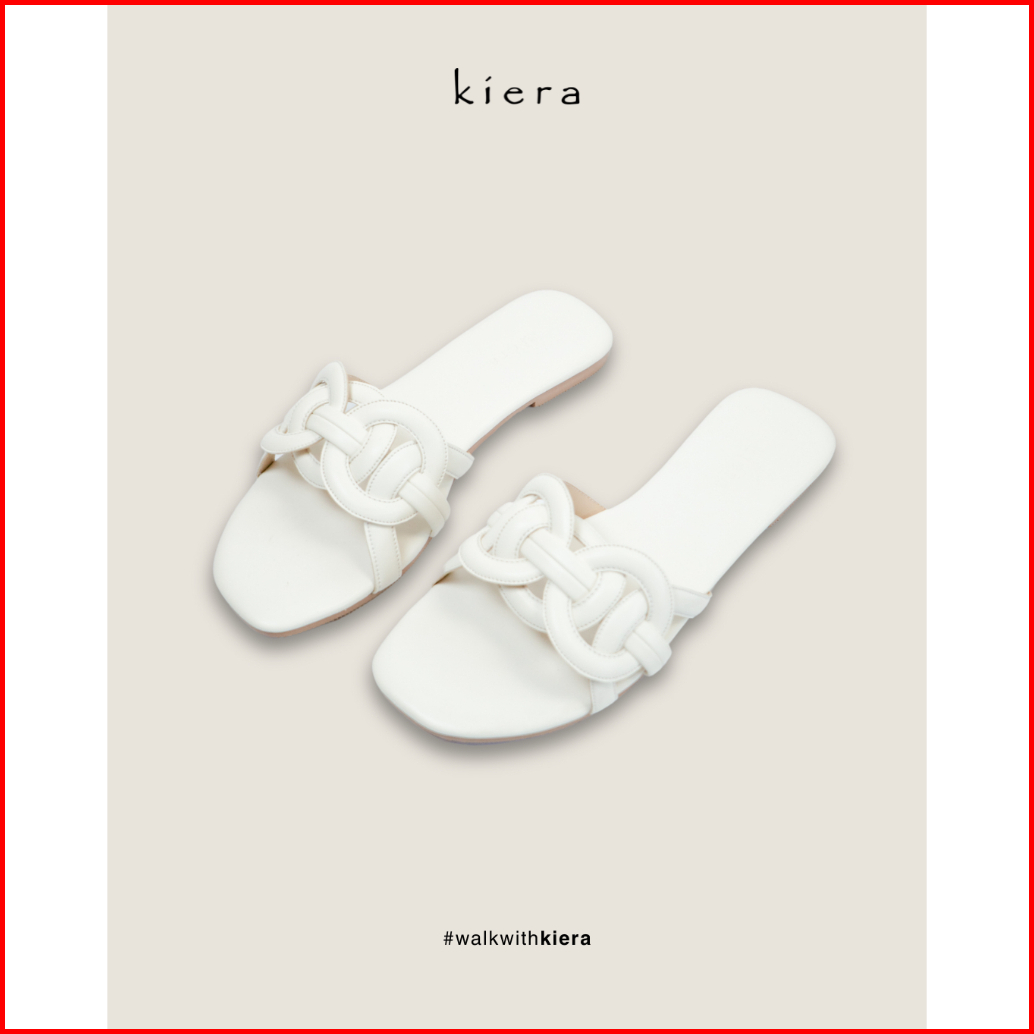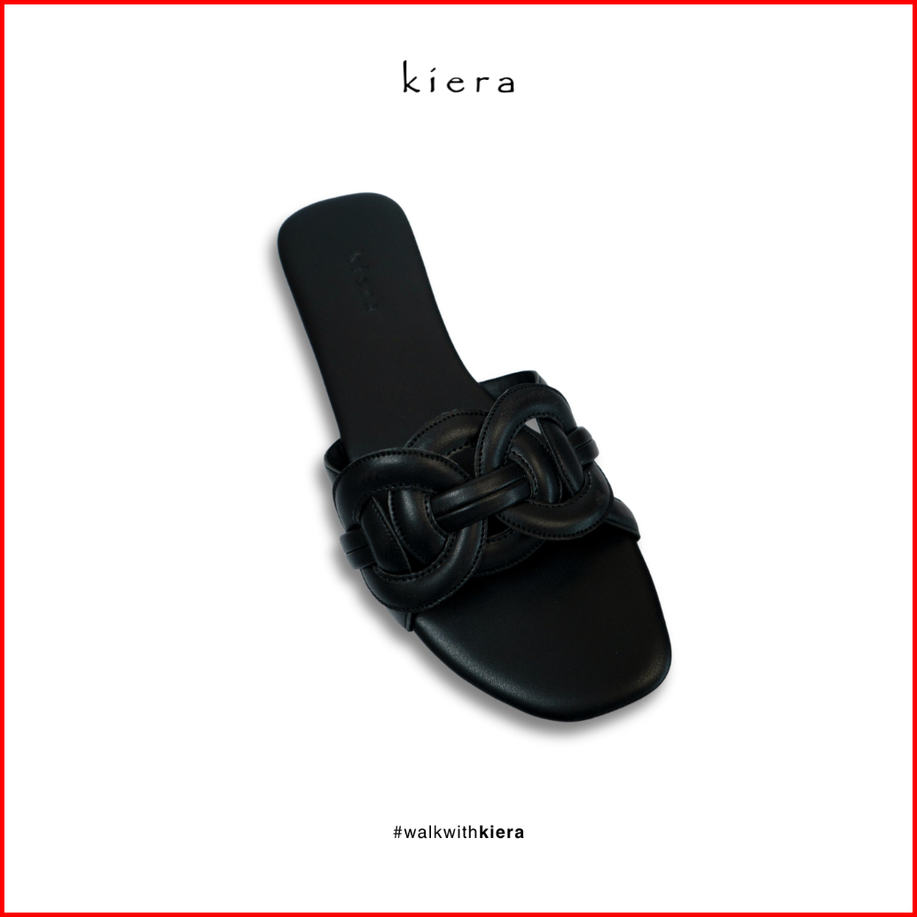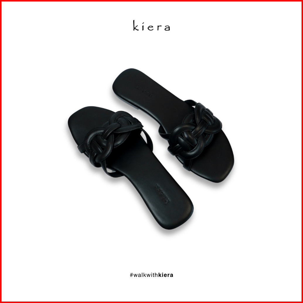Kiera Sandal Wanita Flat Luna Kulit Pu Hitam Putih
