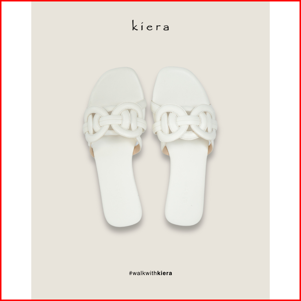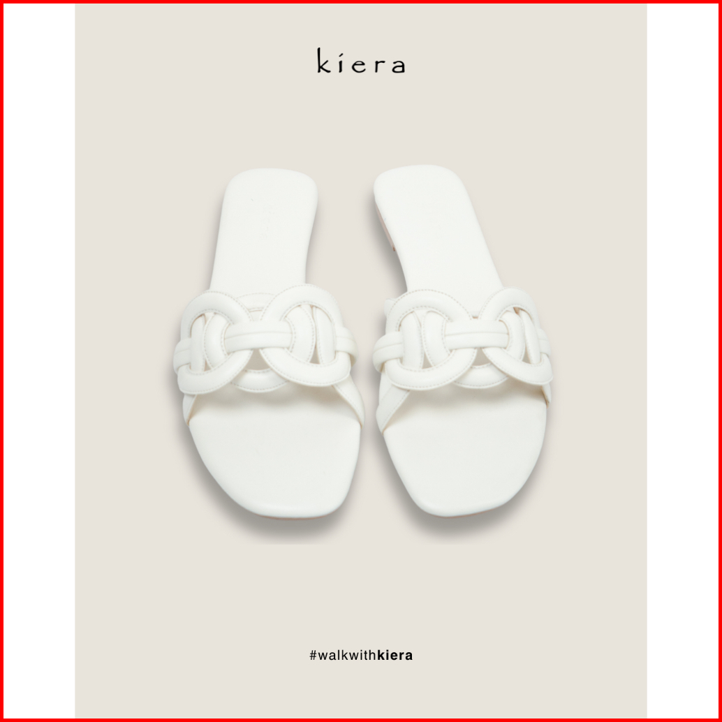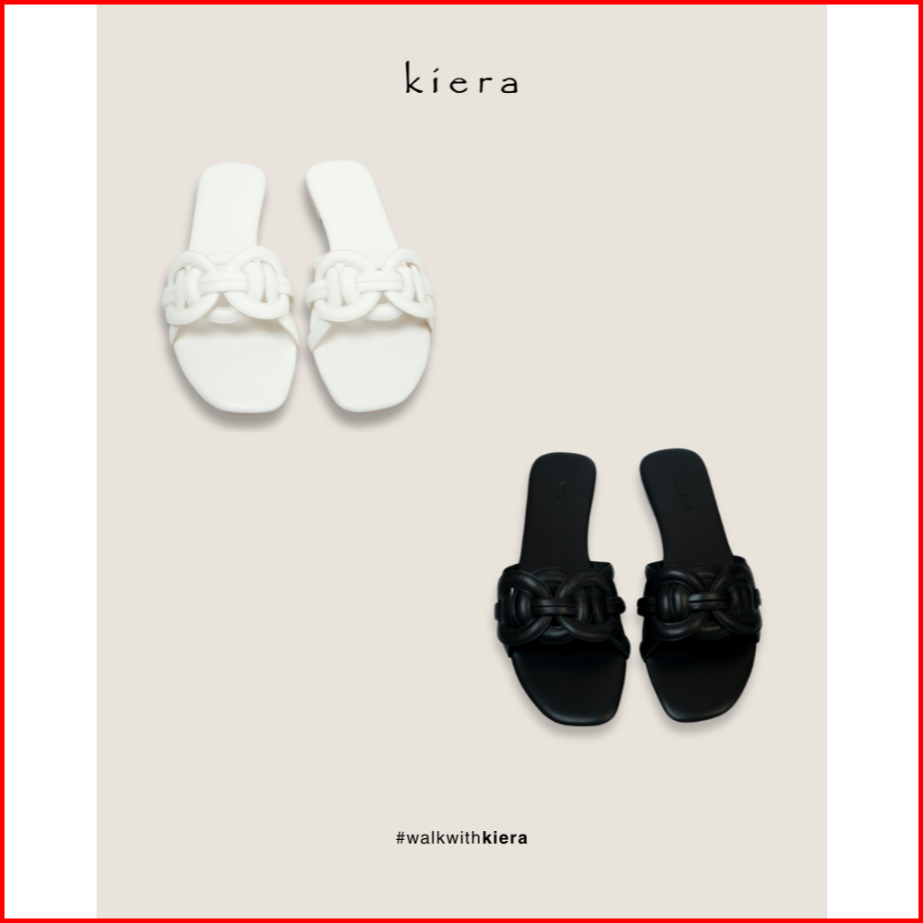 Kiera Sandal Wanita Flat Luna Kulit Pu Hitam Putih