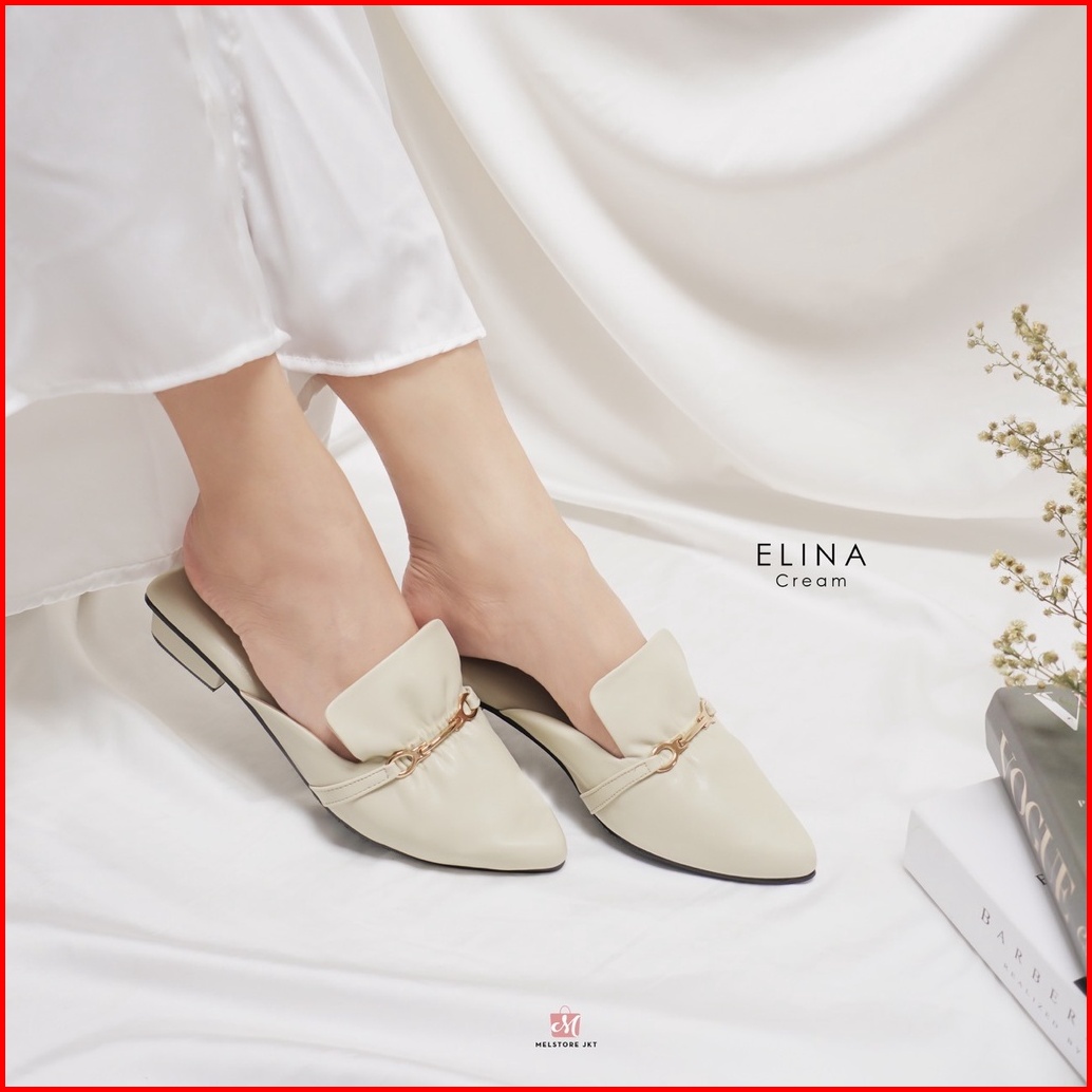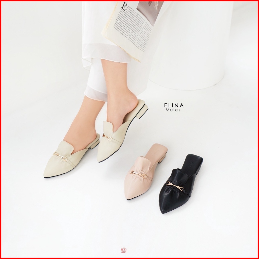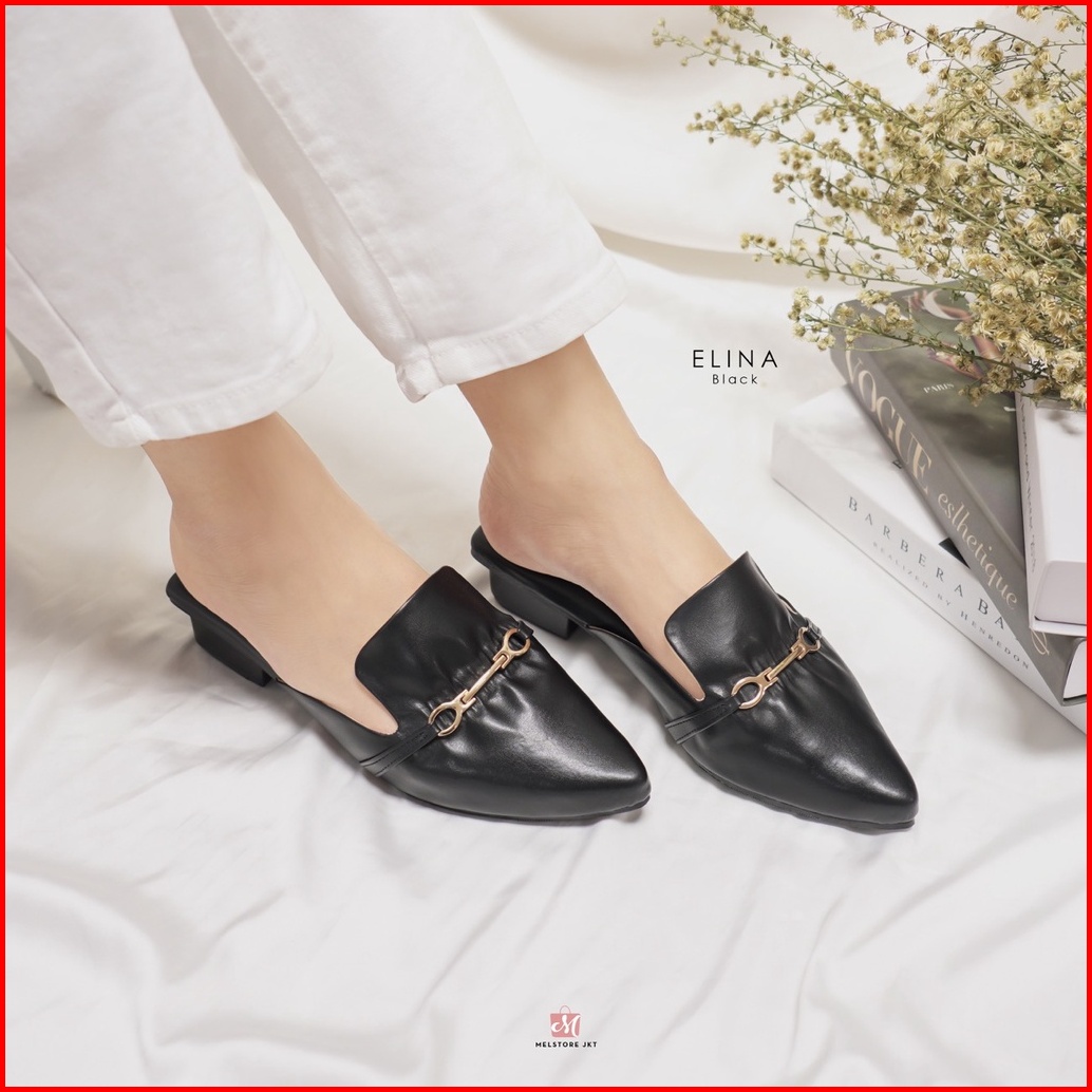 Damelia Melstore Jkt Elina Mules Wanita Sandal Mules Heels 2cm Slip On Kekinian