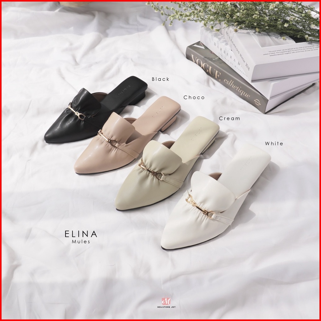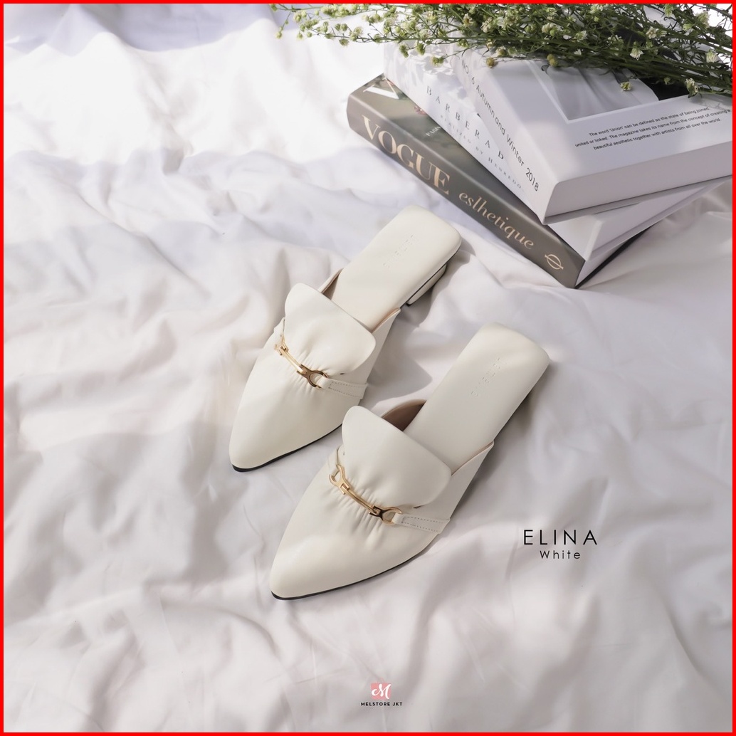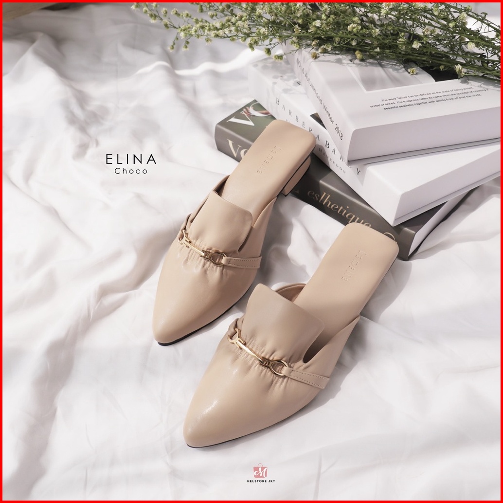 Damelia Melstore Jkt Elina Mules Wanita Sandal Mules Heels 2cm Slip On Kekinian