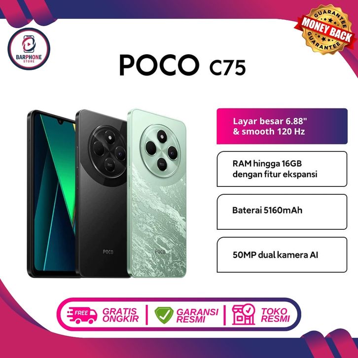 POCO C75 RAM 6/128GB RAM 8/256GB LAYAR 6,88 50MP HP MURAH BERKUALITAS GARANSI RESMI TANPA DP