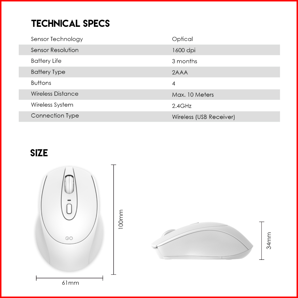Mouse Wireless Office Fantech Go 2.4ghz 1600dpi