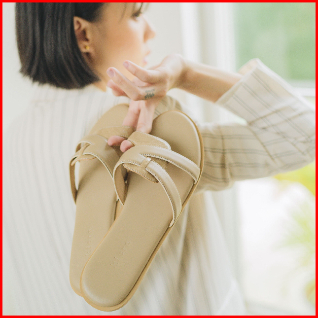 Kiera Sandal Wanita Flat Lisa Mocca Kulit Sintetis
