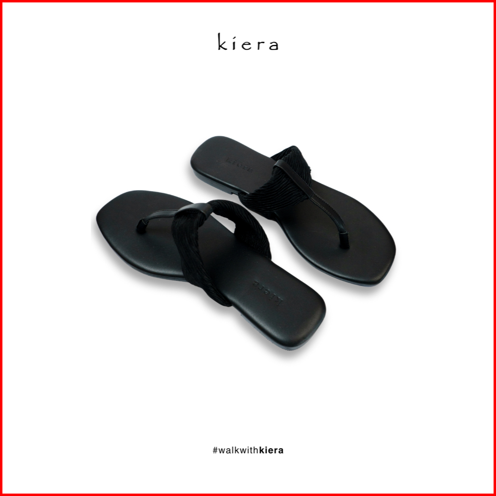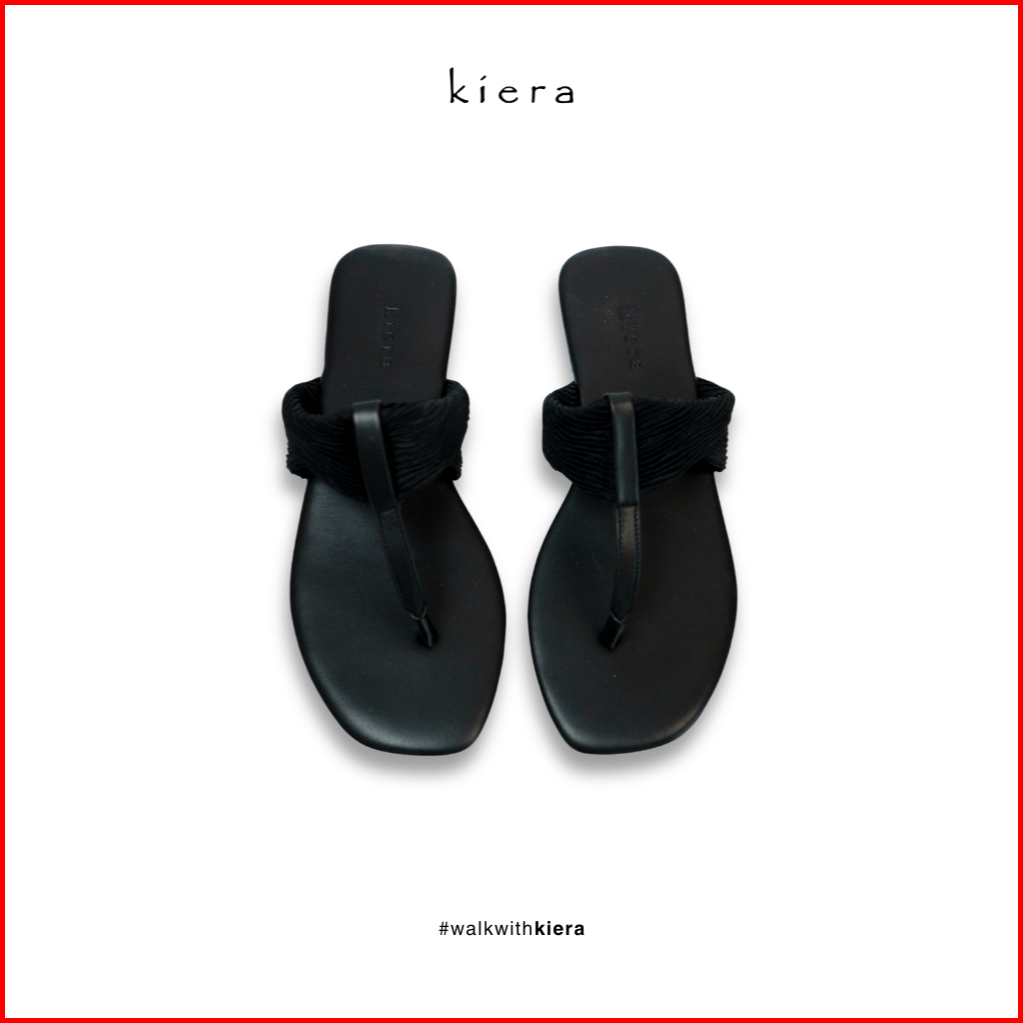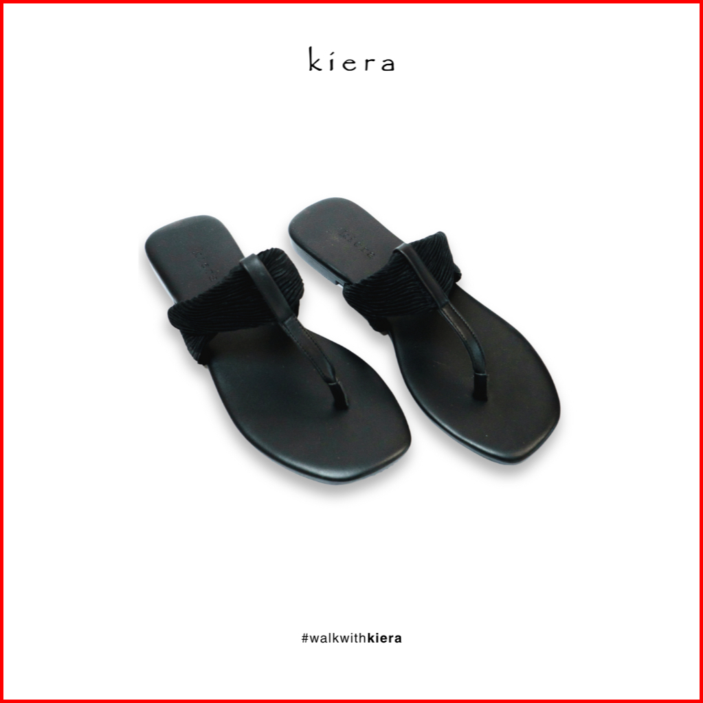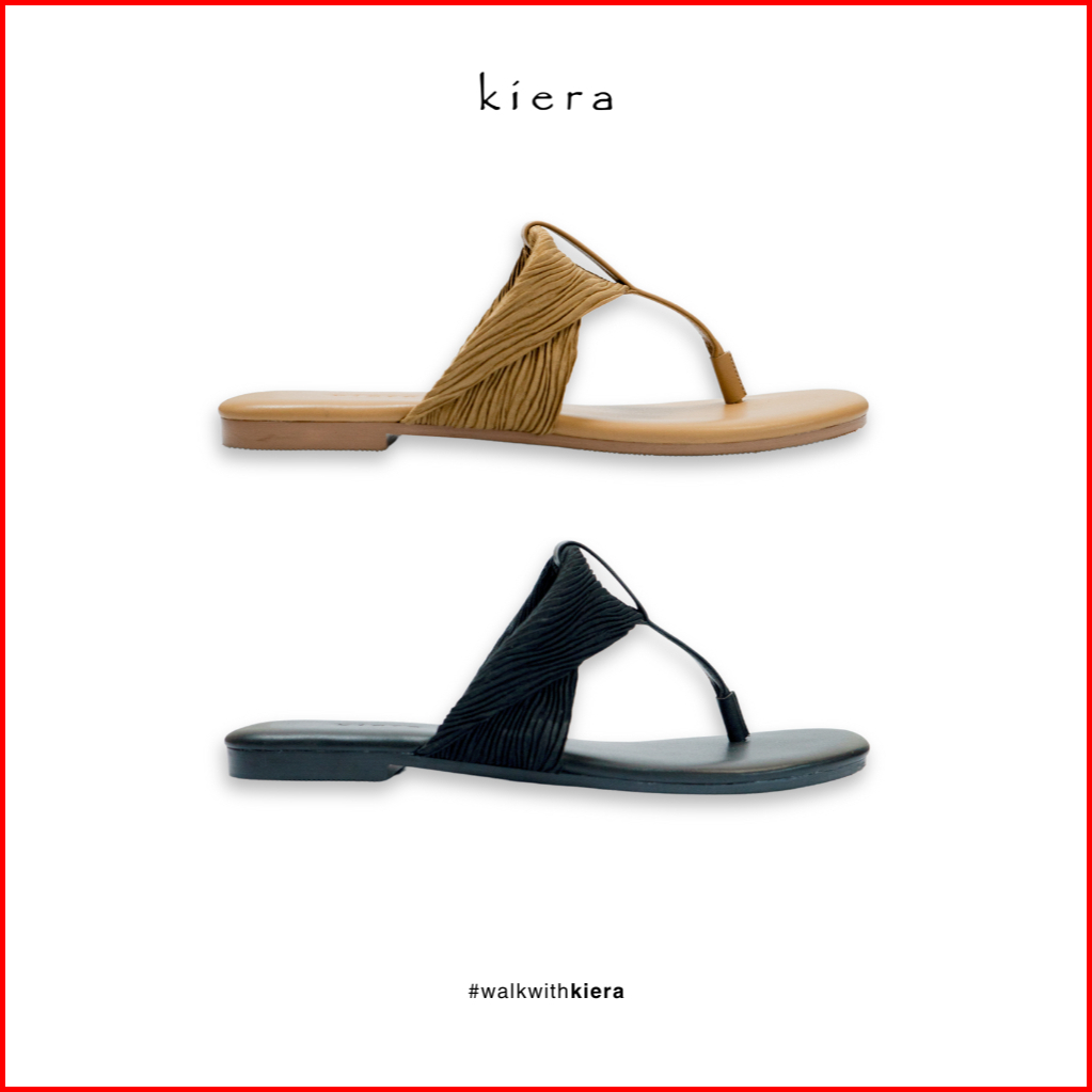 Kiera Sandal Wanita Jepit Maya Black Camel Kulit Sintetis