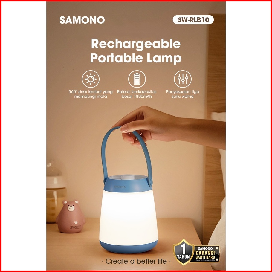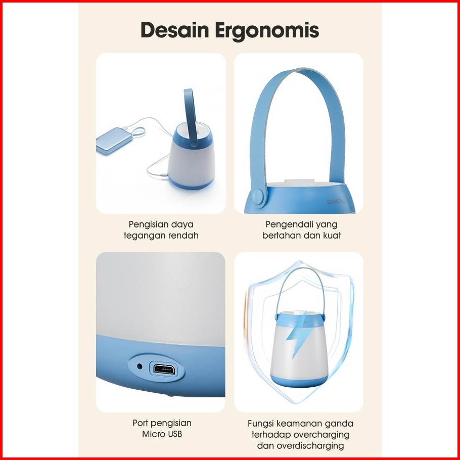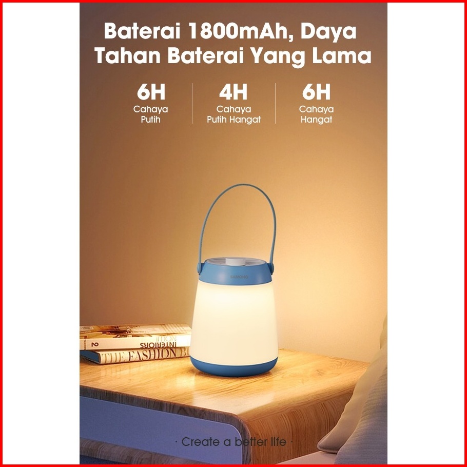 Samono Sw-rlb10 Lampu Gantung Kamar Baca Kerja Meja Belajar Rechargeable Portabel Lamp Terang 360 Lampu Senter Gantung E