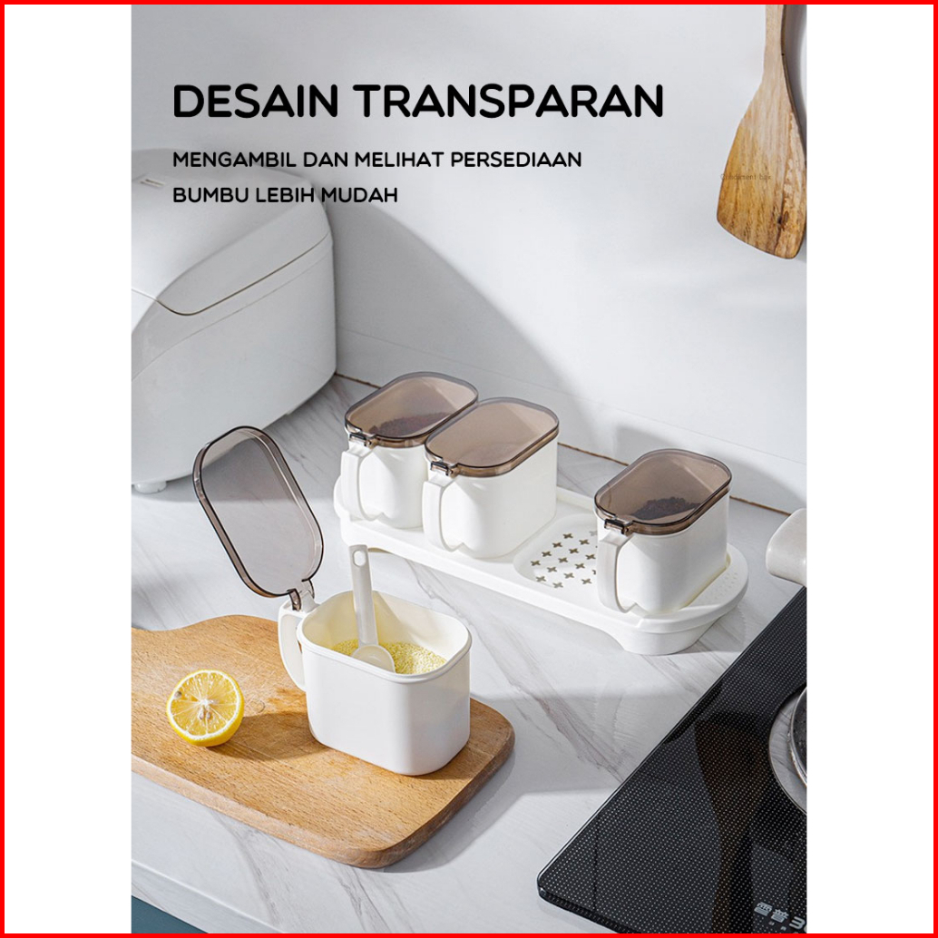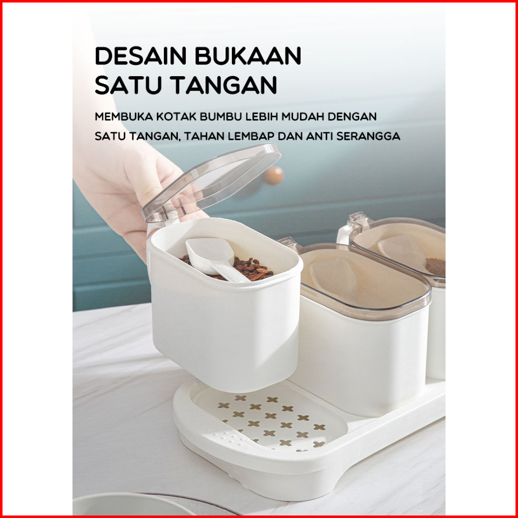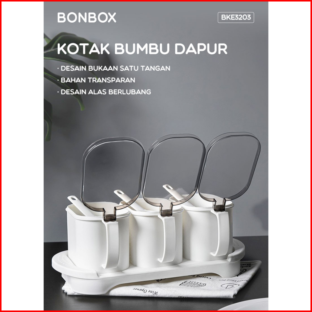 Bonbox Tempat Penyimpan Bumbu Dapur 3 Pcs Kotak Penyimpanan Bumbu Masak Wadah Penyimpanan Bumbu Rak Bumbu Simple Muat Sa