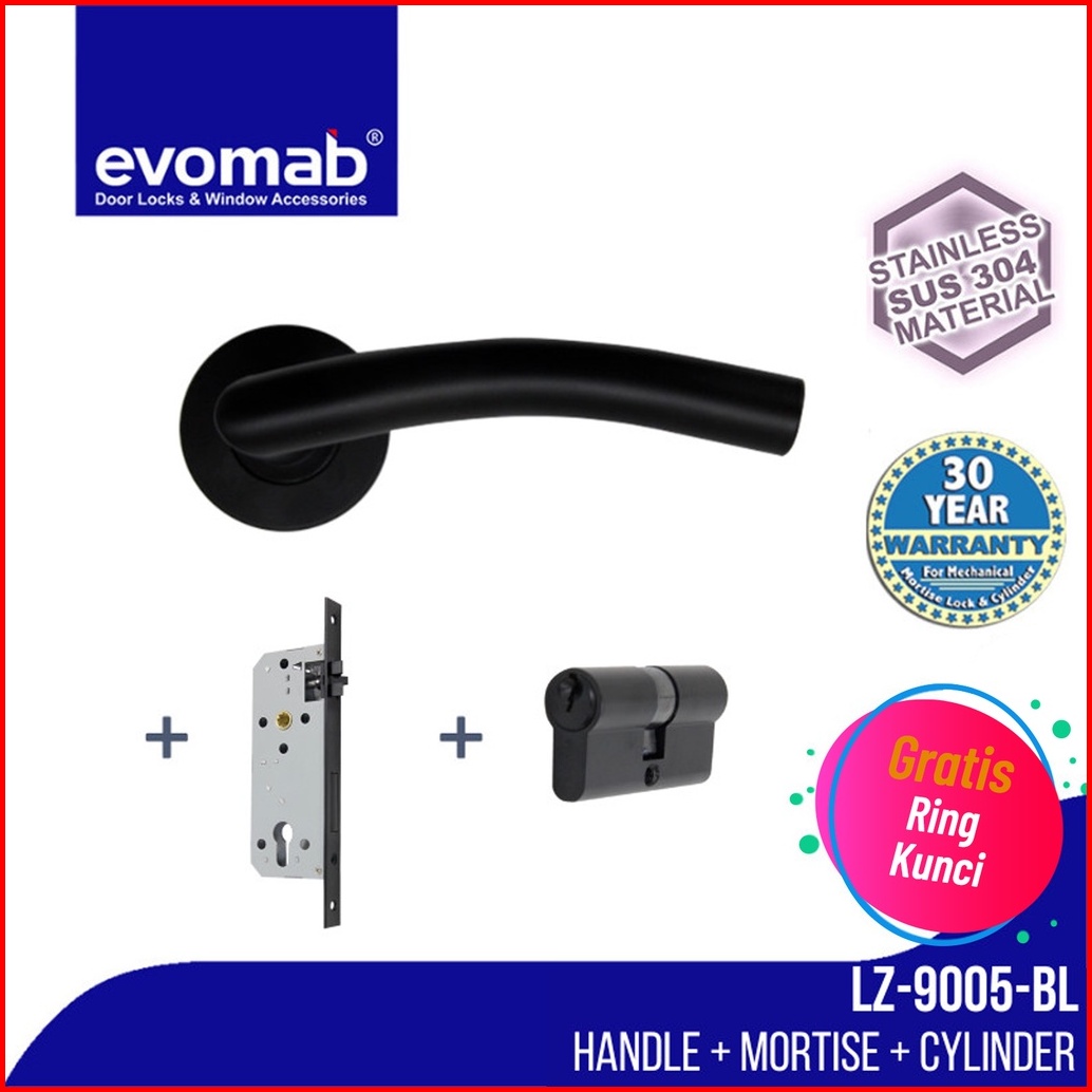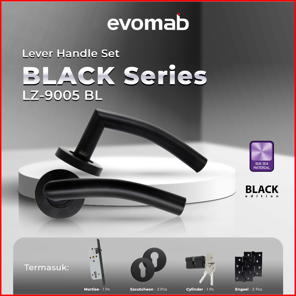 Evomab Handle Pintu Satu Set Lengkap Minimalis Black Hitam Tipe Lz-9005-bl