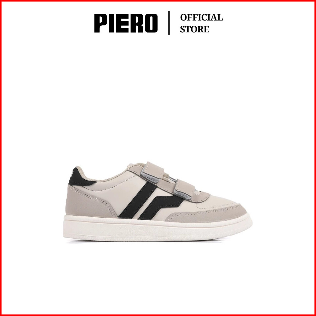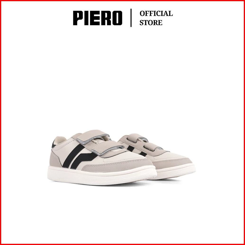 Piero Sepatu Sneakers Court Derby Jr Light Grey Oyster White Pale Brown Pie1000157