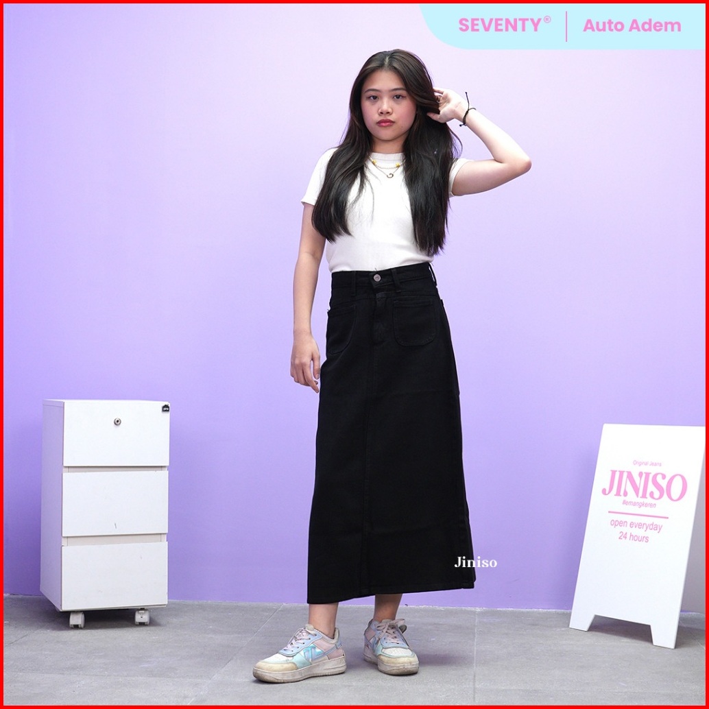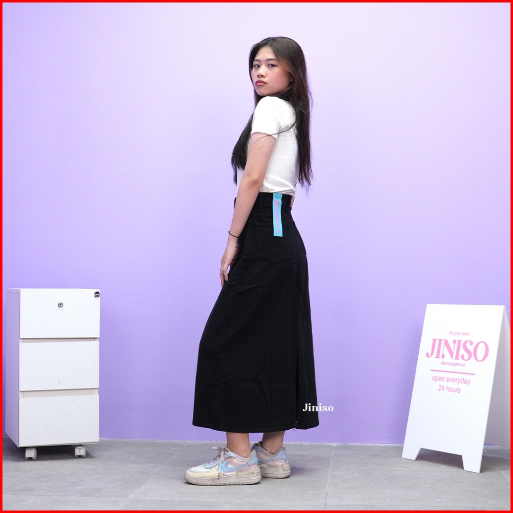 Jiniso - Highwaist Pocket Rok Slit Jeans Panjang 968 Seventy