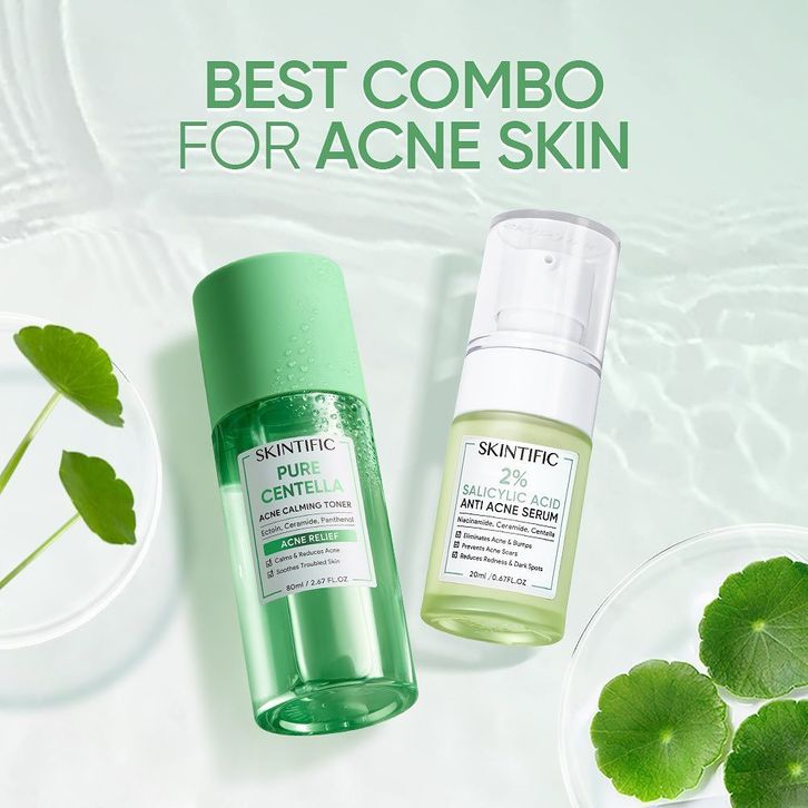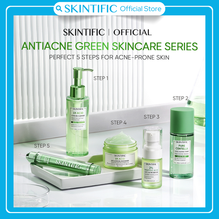 SKINTIFIC Green Series Anti Acne Set | Centella Moisturizer Serum Sunscreen facial Wash - Skintific Official Store Mall