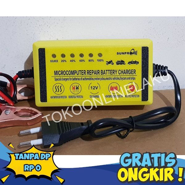 [Mall] Pengisi Daya Aki Sunpro 12V 2A / Charger Aki Mobil, Motor, Aman, dan Hemat Energi