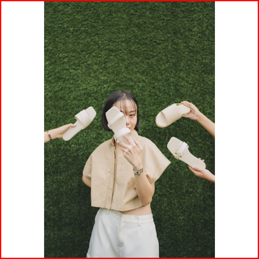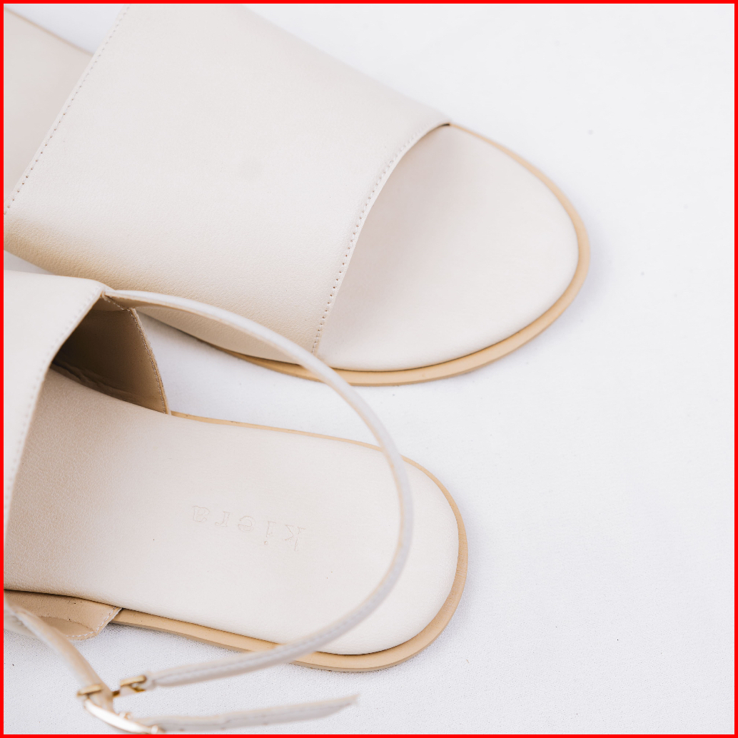 Kiera Sandal Wanita Flat Beige Kulit Sintetis