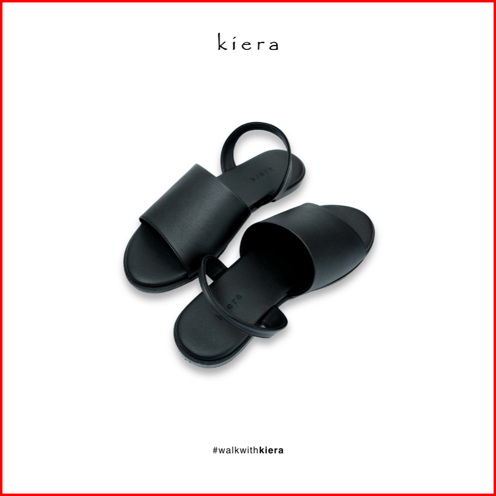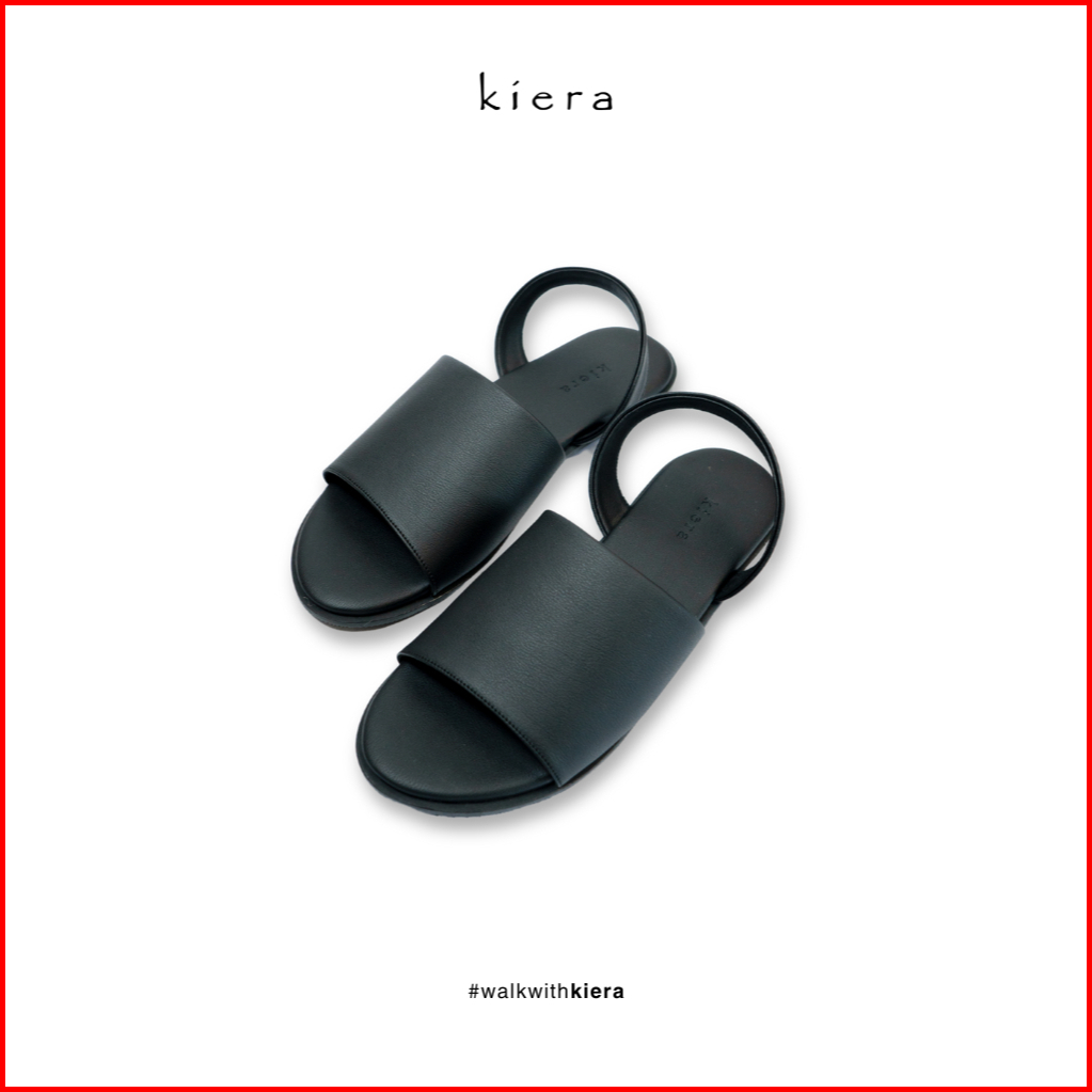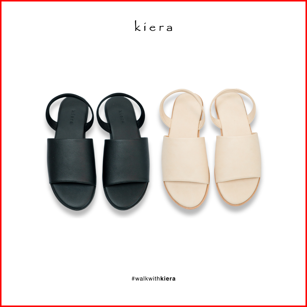 Kiera Sandal Wanita Flat Avery Beige Black Kulit Sintetis Premium