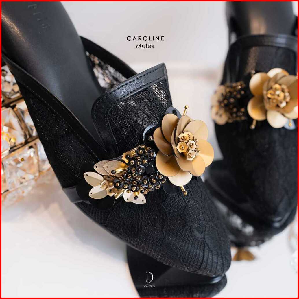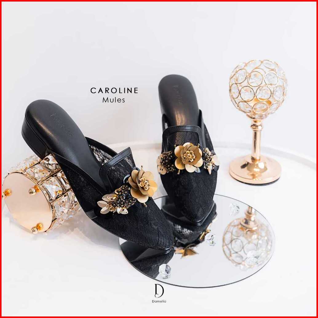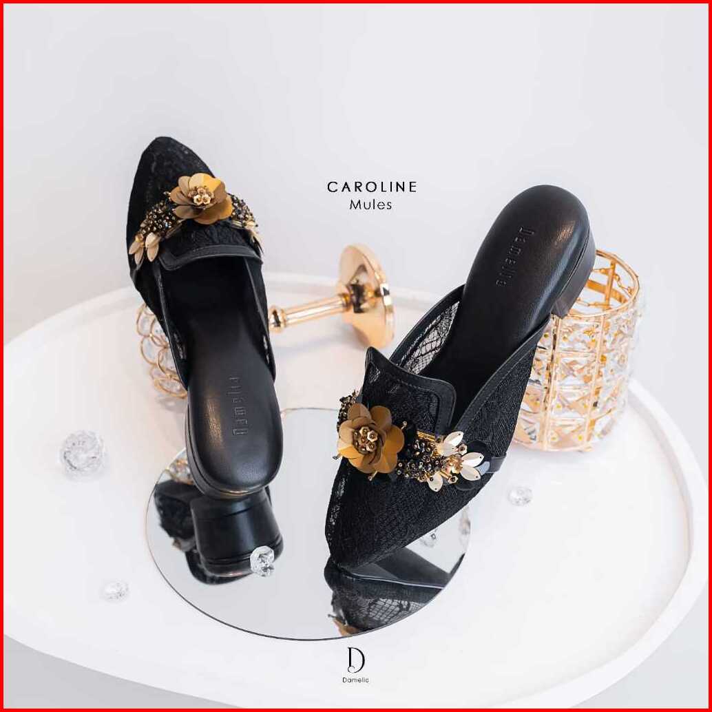 Damelia Melstore Jkt Caroline Mules Wanita Sandal Heels Brukat Endal Hak Tahu 3 Cm Elegan
