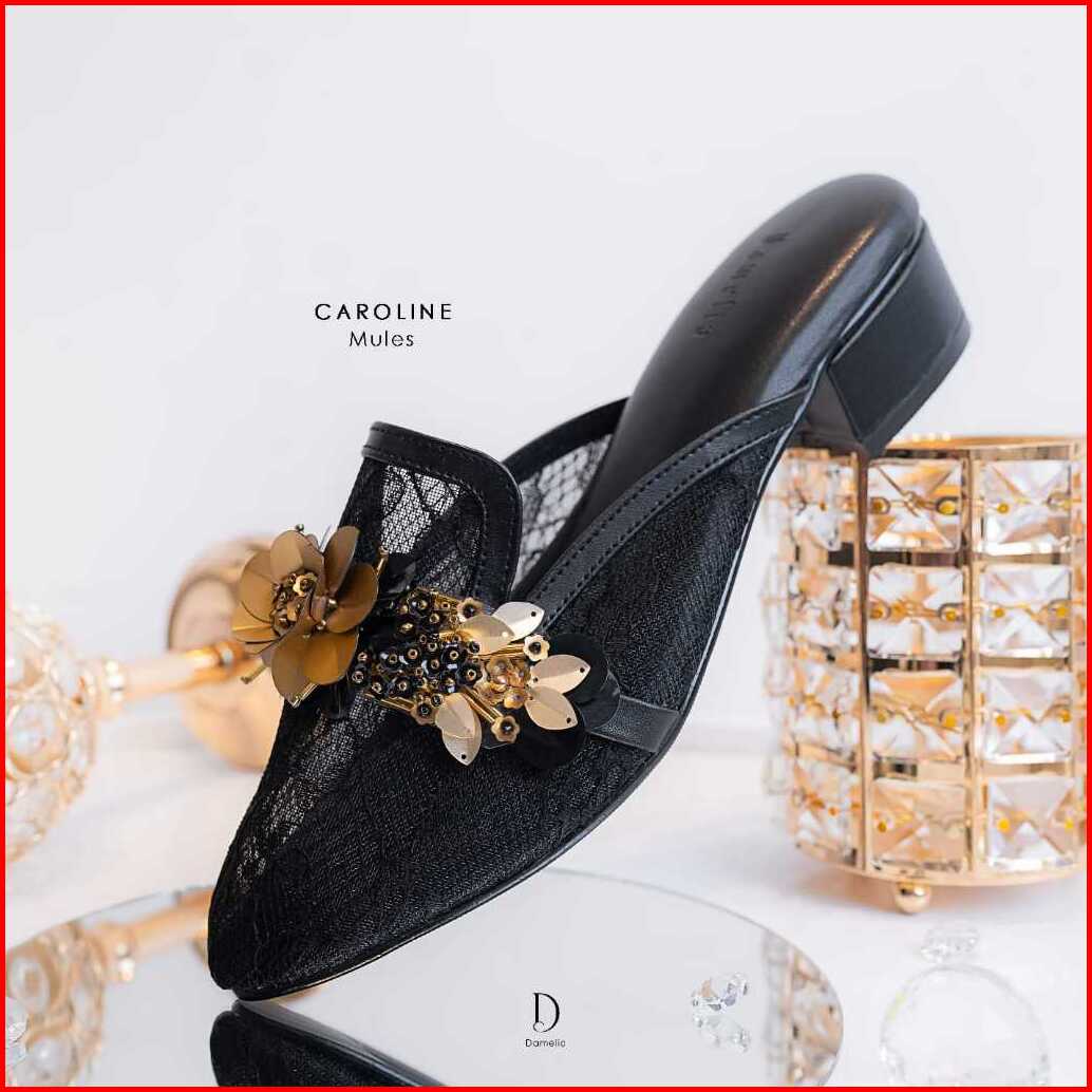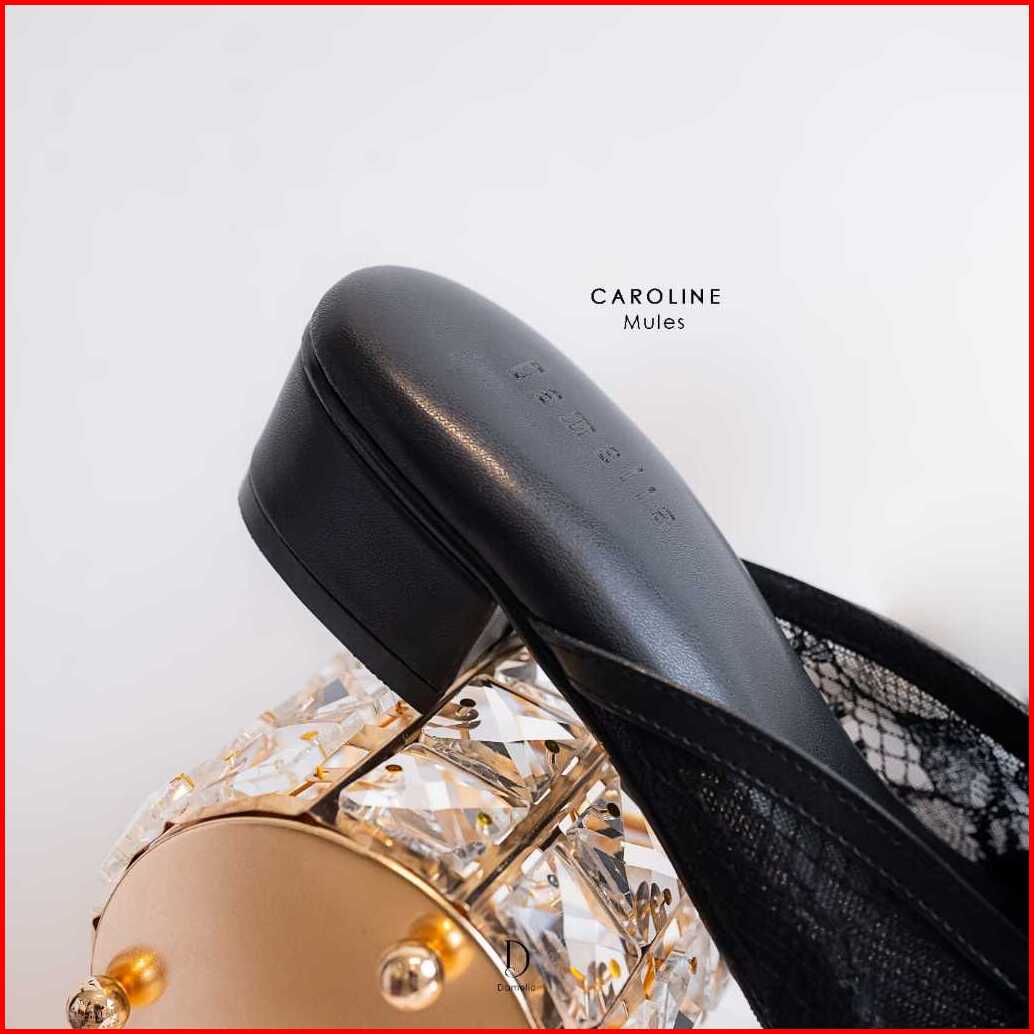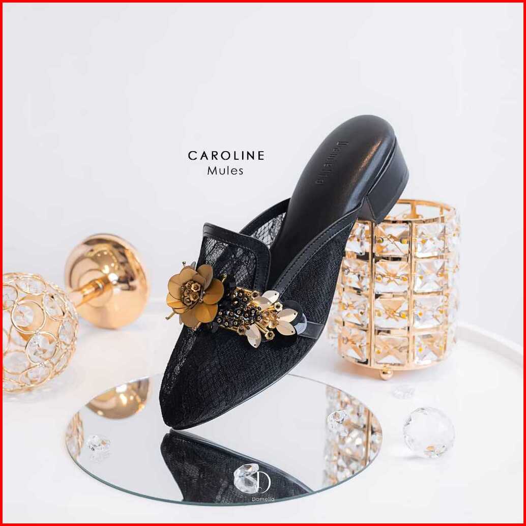 Damelia Melstore Jkt Caroline Mules Wanita Sandal Heels Brukat Endal Hak Tahu 3 Cm Elegan