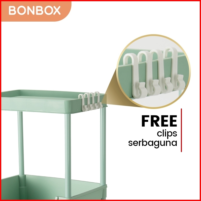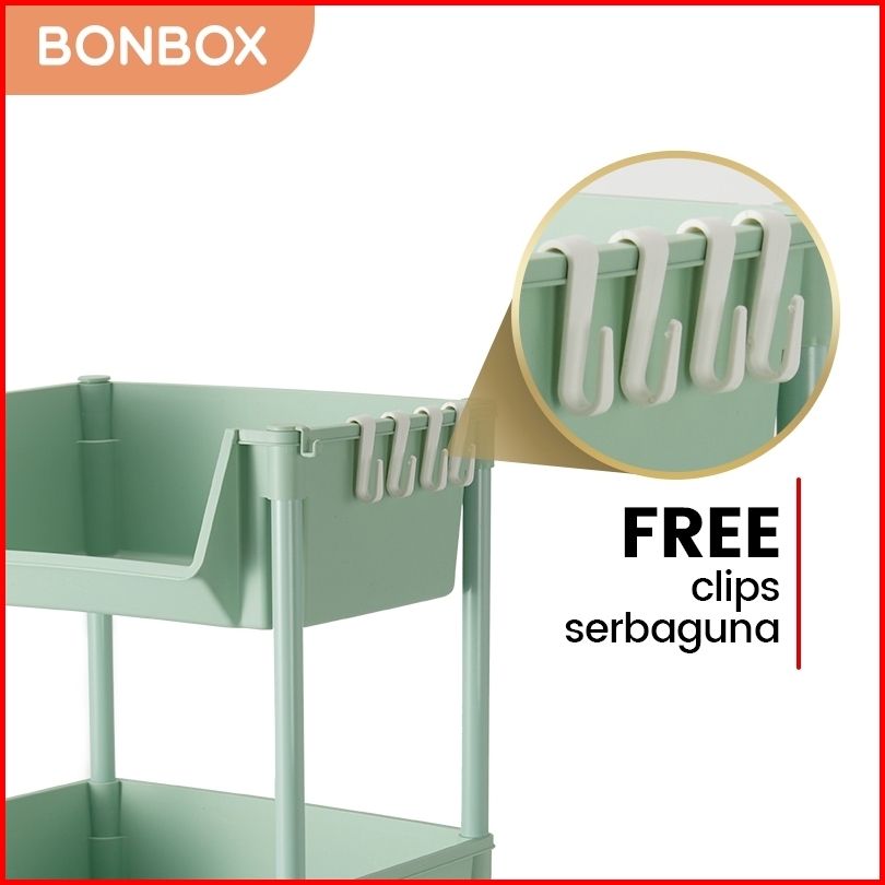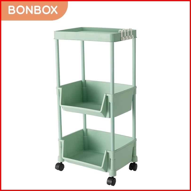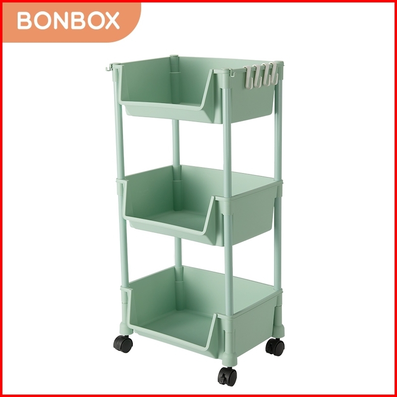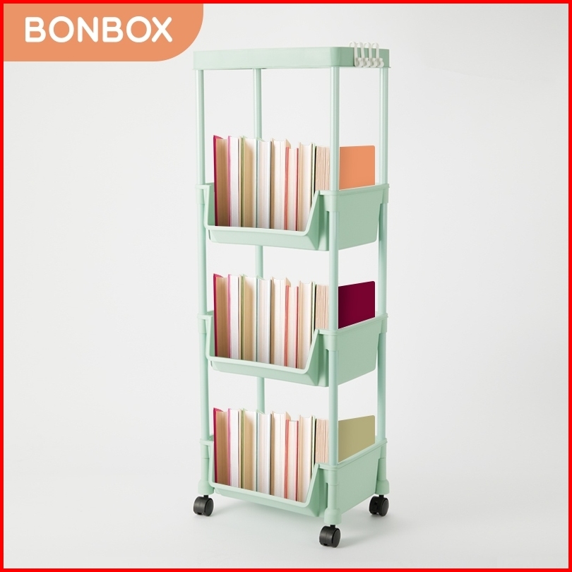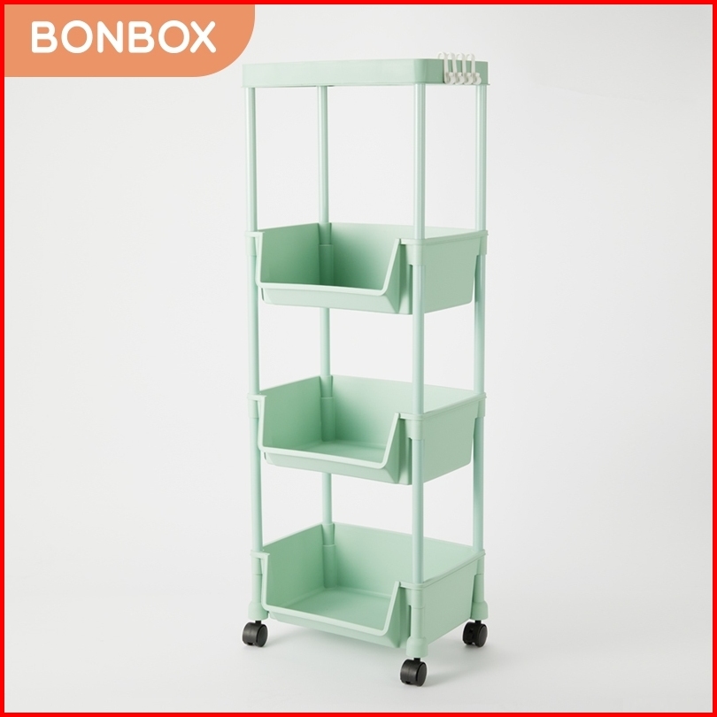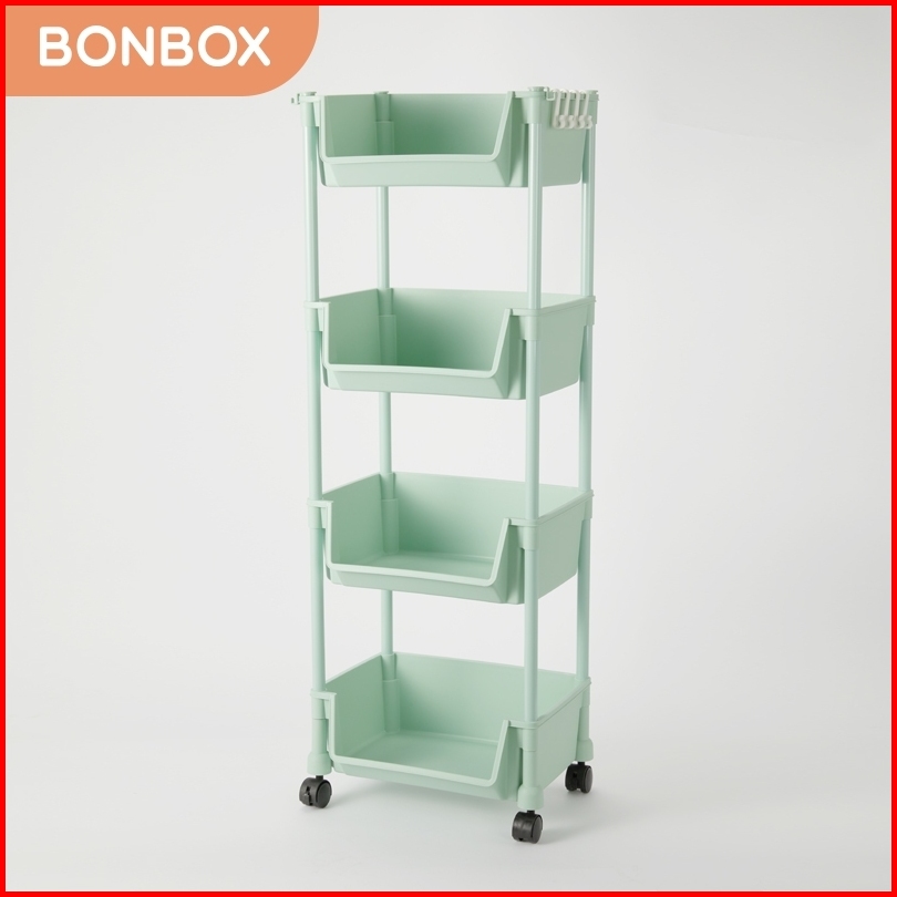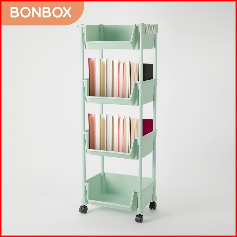 Bonbox Rak Serbaguna Rak Buku Rak Troli Square Rak Penyimpanan Makanan Plastik Rak Susun 4 Tingkat Dengan Roda Bfs31202a