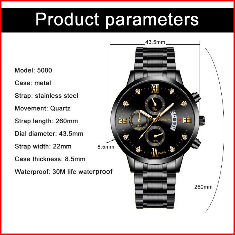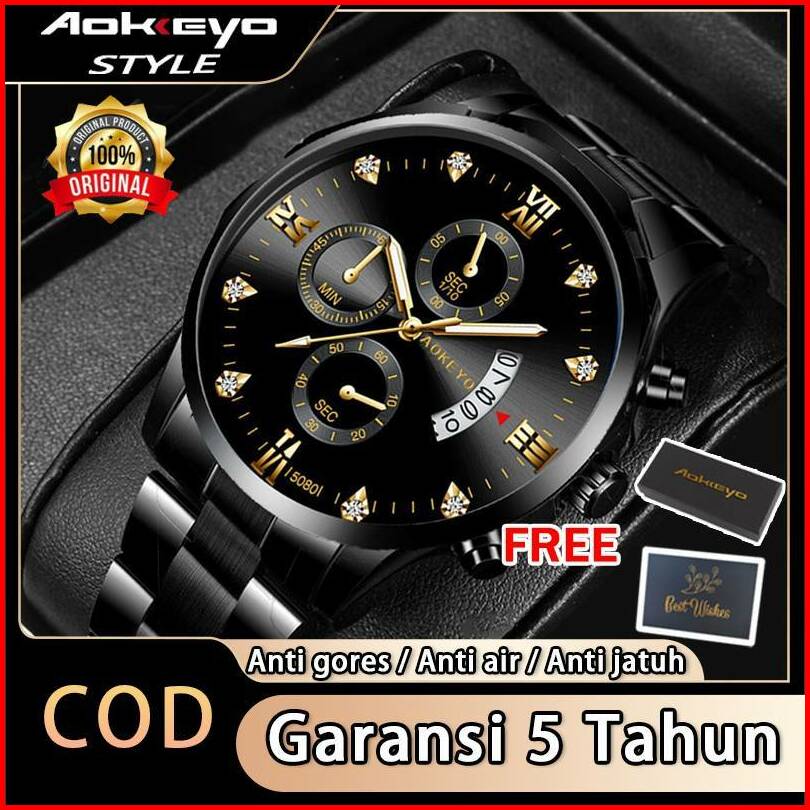 Best Selleraokeyo 5080 Jam Tangan Pria Anti Air Original Luxury Stainless Steelfree Box Kartu Garansi