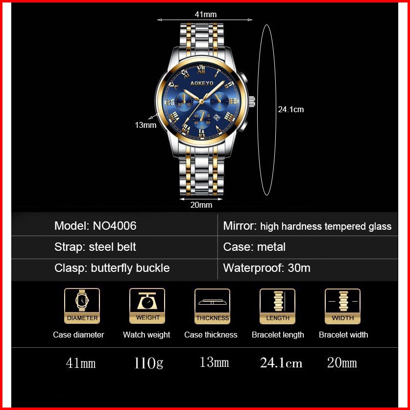 Aokeyo 4006 Jam Tangan Pria Anti Air Ori Jam Tangan Pria Anti Air Original Luxury Stainless Steel Free Box Kartu