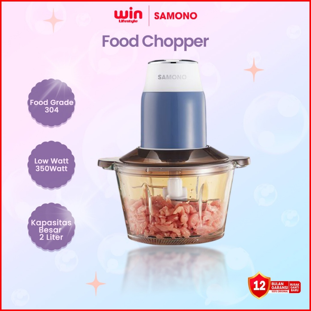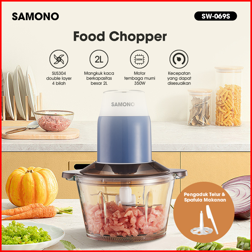 Samono Food Chopper 2 Liter 350 Watt 4 Pisau Chopper Serbaguna Penggiling Daging Food Grade Sw-069s - Garansi 1 Tahun