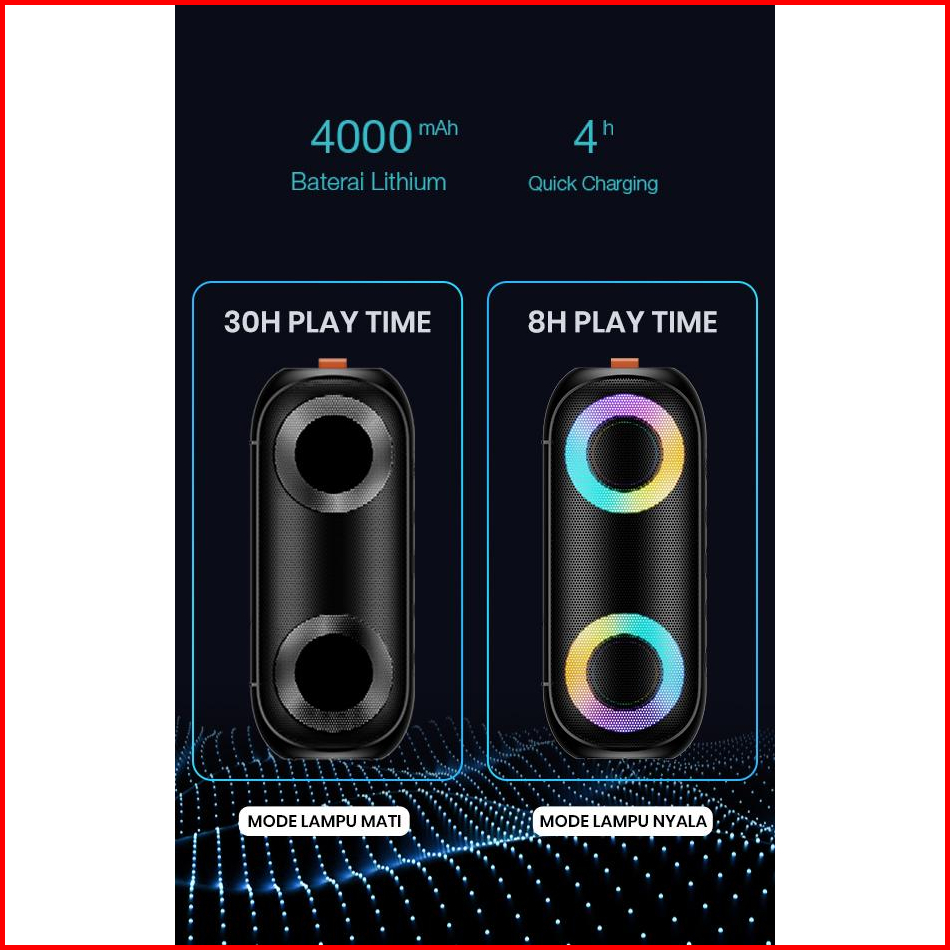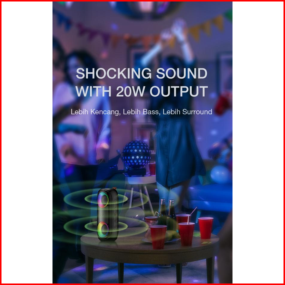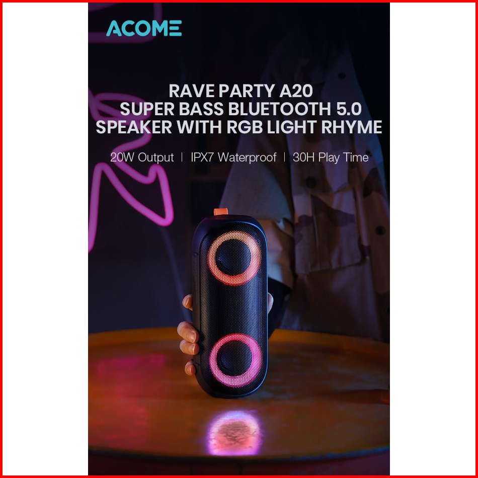 Acome Super Bass Speaker Bluetooth 5.0 20w Ipx7 Waterproof Rgb Light Rhyme Rave Party A20