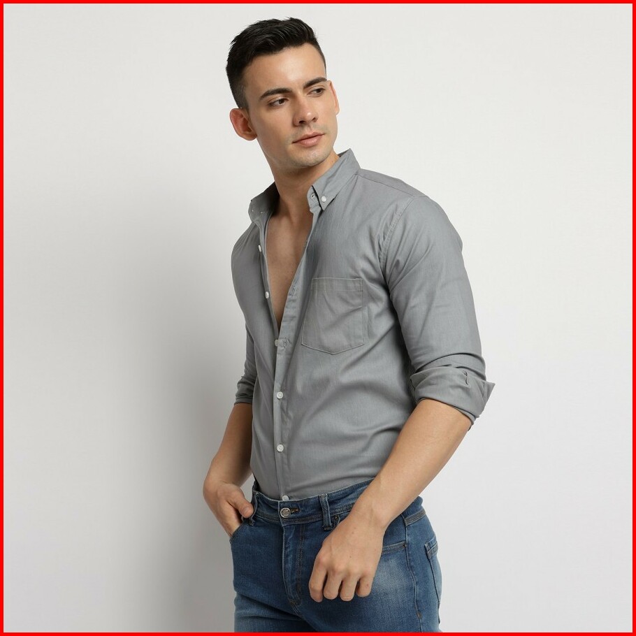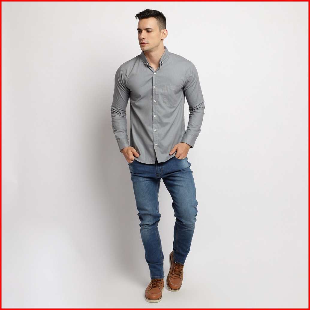Vengoz Kemeja Pria Oxford Premium Slim Fit - Ash Grey