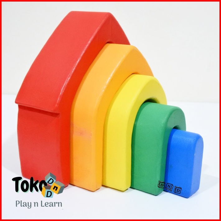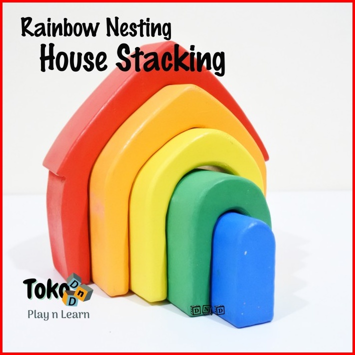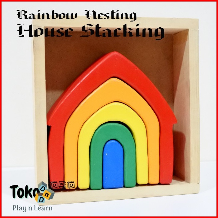 Mainan Edukasi Anak - Rainbow Nesting House Stacking Rumah Kayu Pelangi