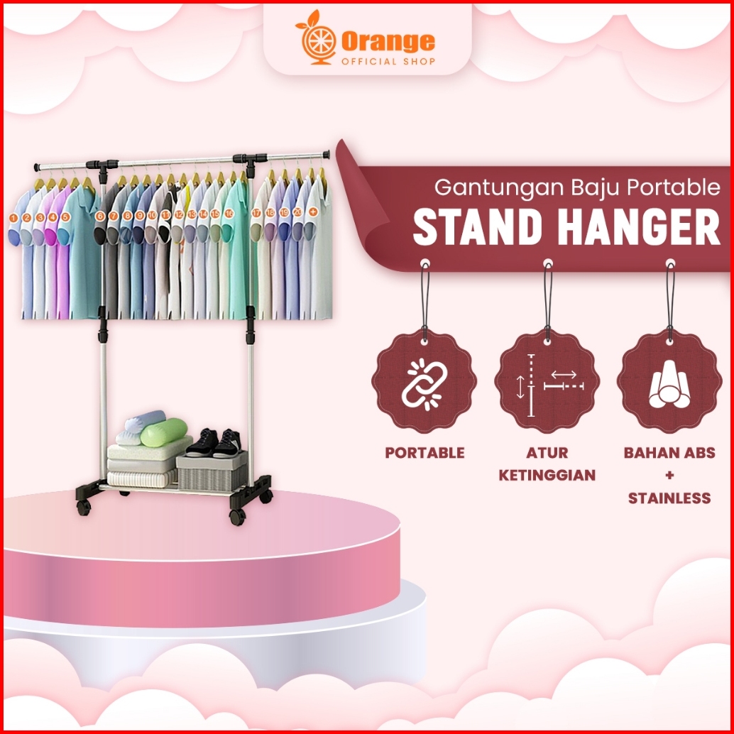 Stand Hanger Jemuran Gawang Jemuran Handuk Stainless Steel Rak Gantungan Baju Adjustable