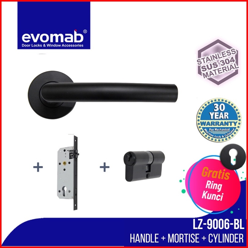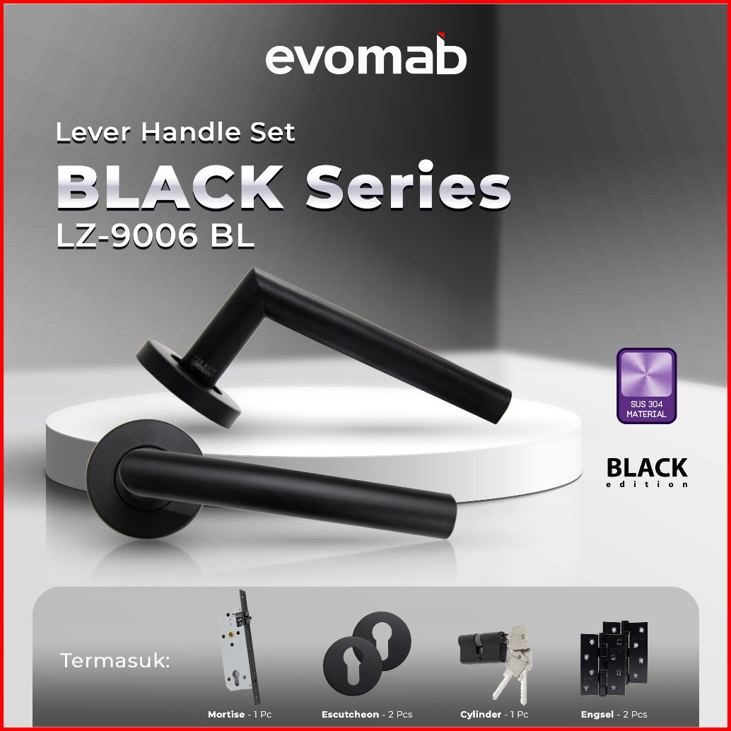 Evomab Handle Pintu Satu Set Lengkap Minimalis Black Hitam Tipe Lz-9006-bl