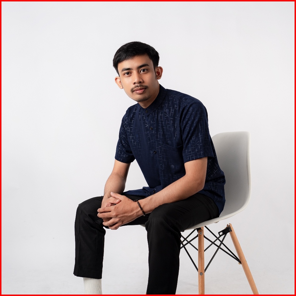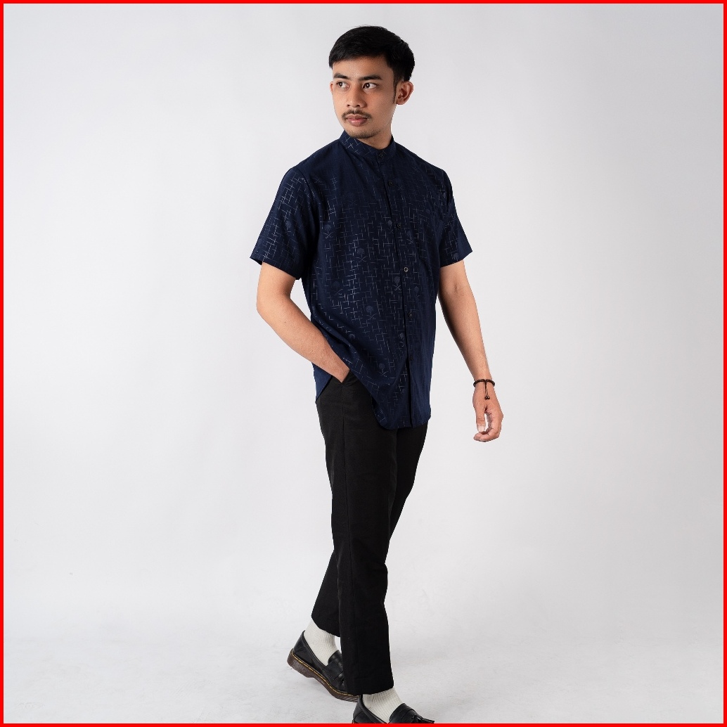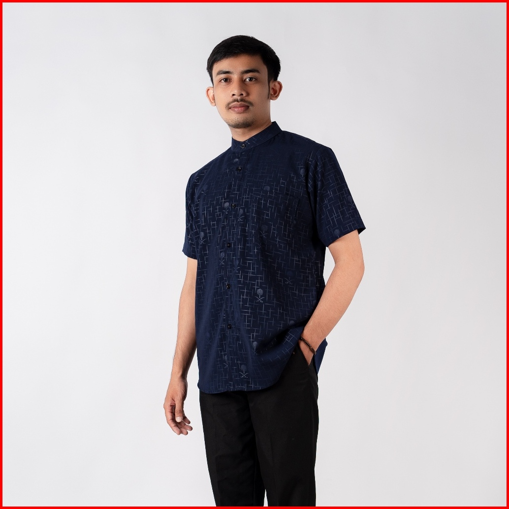 Khaf97 - Bairel Kurma Kemeja Koko Pria Dewasa Lengan Pendek Pakaian Muslim Warna Navy Blue Embos