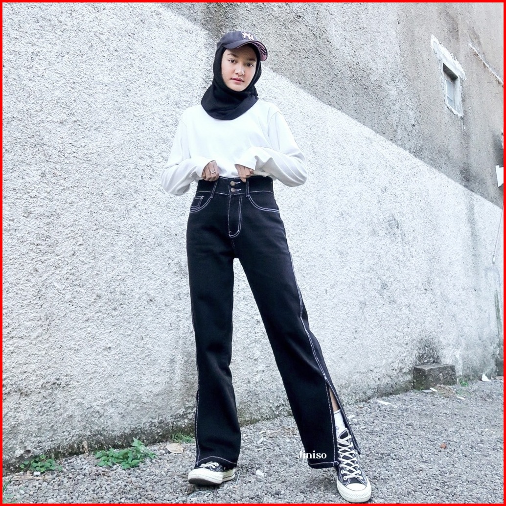 Gratis Hadiah Jiniso - Highwaist Loose Hangover Slit Jeans Vol. 1