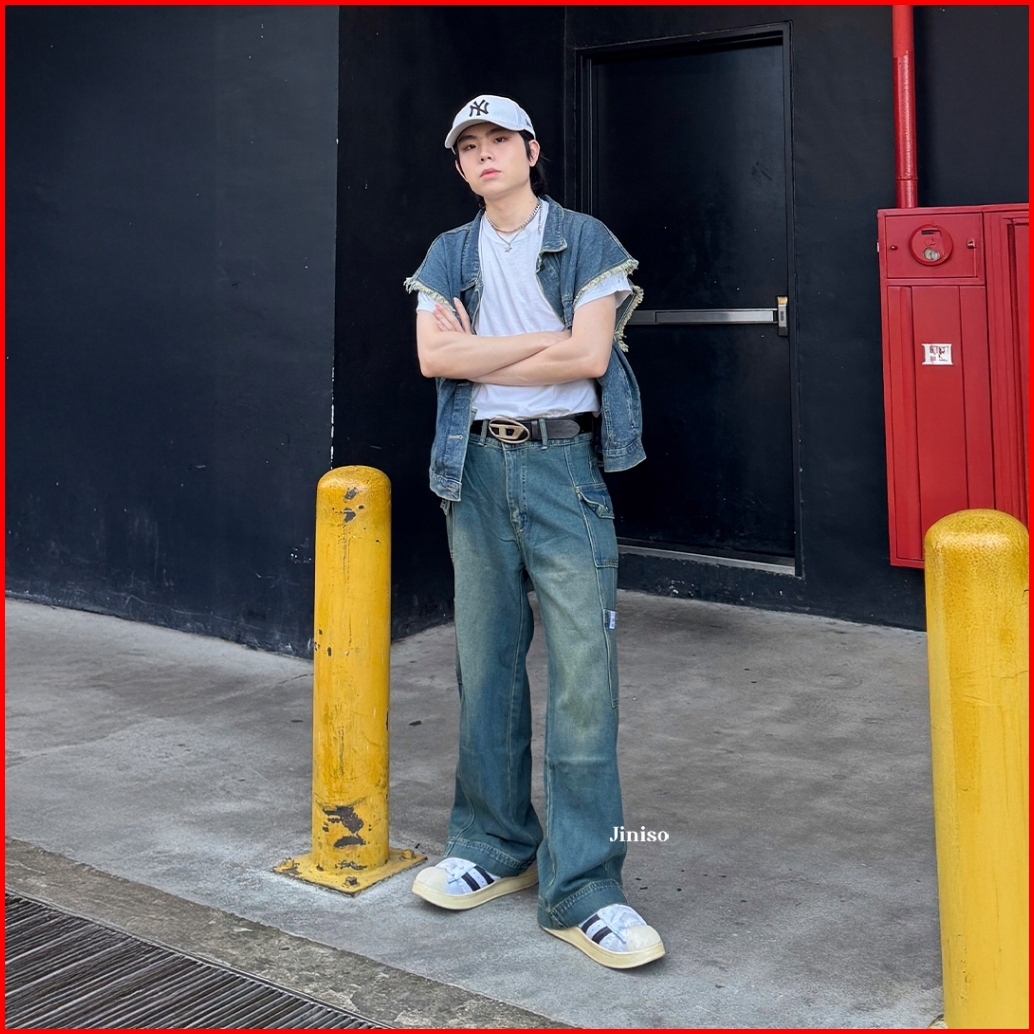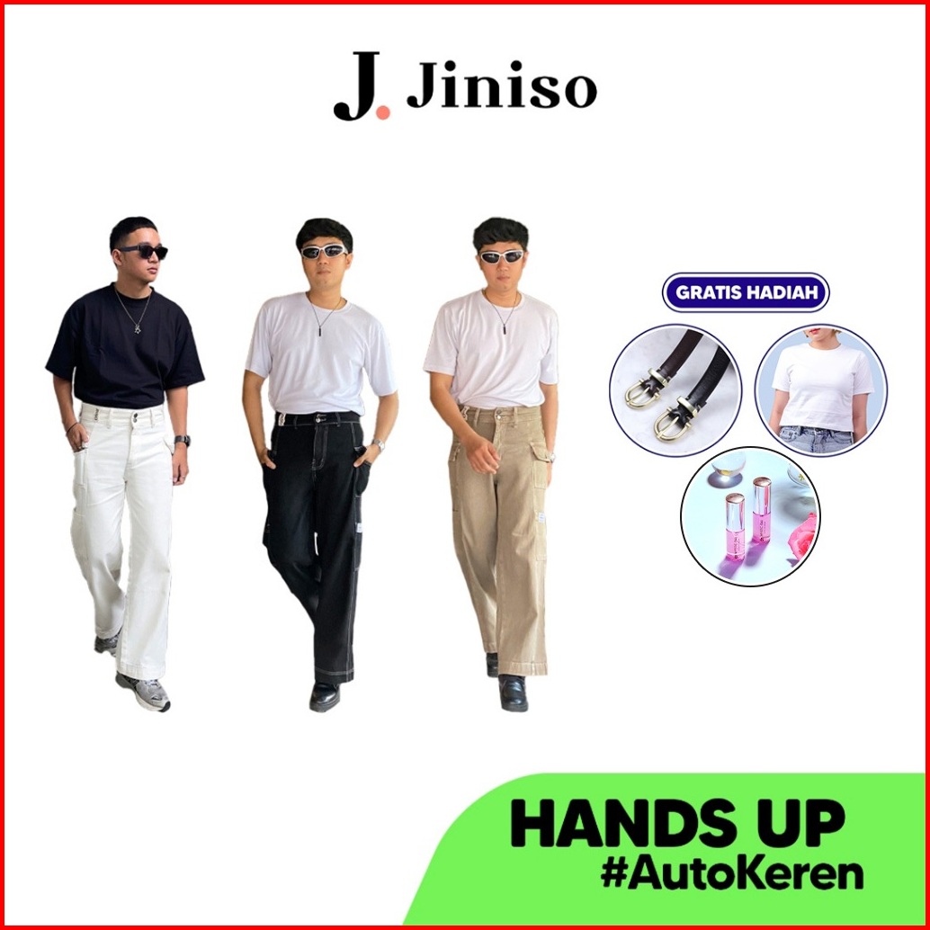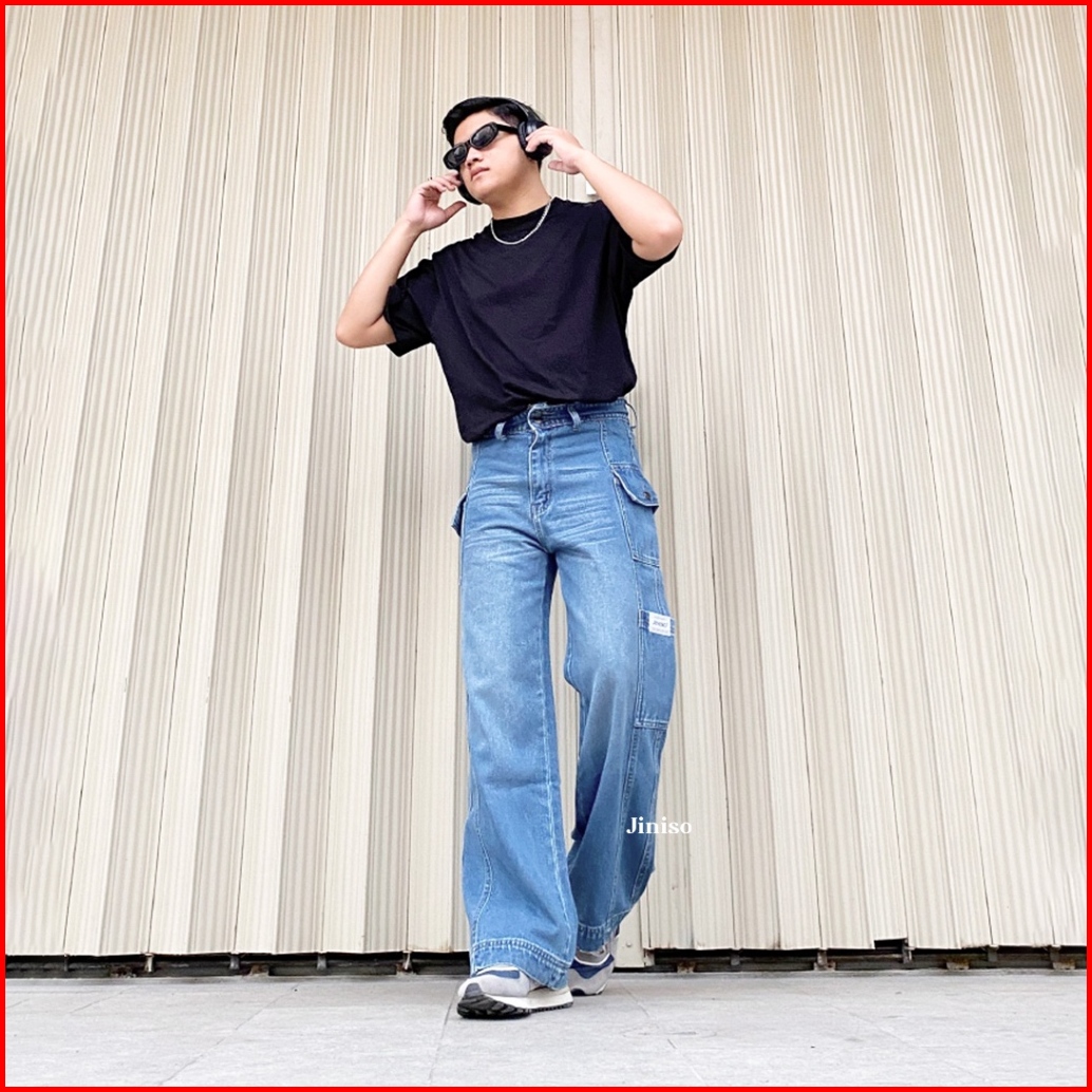 Gratis Hadiah Jiniso Cargo Baggy Denim Jeans Pria
