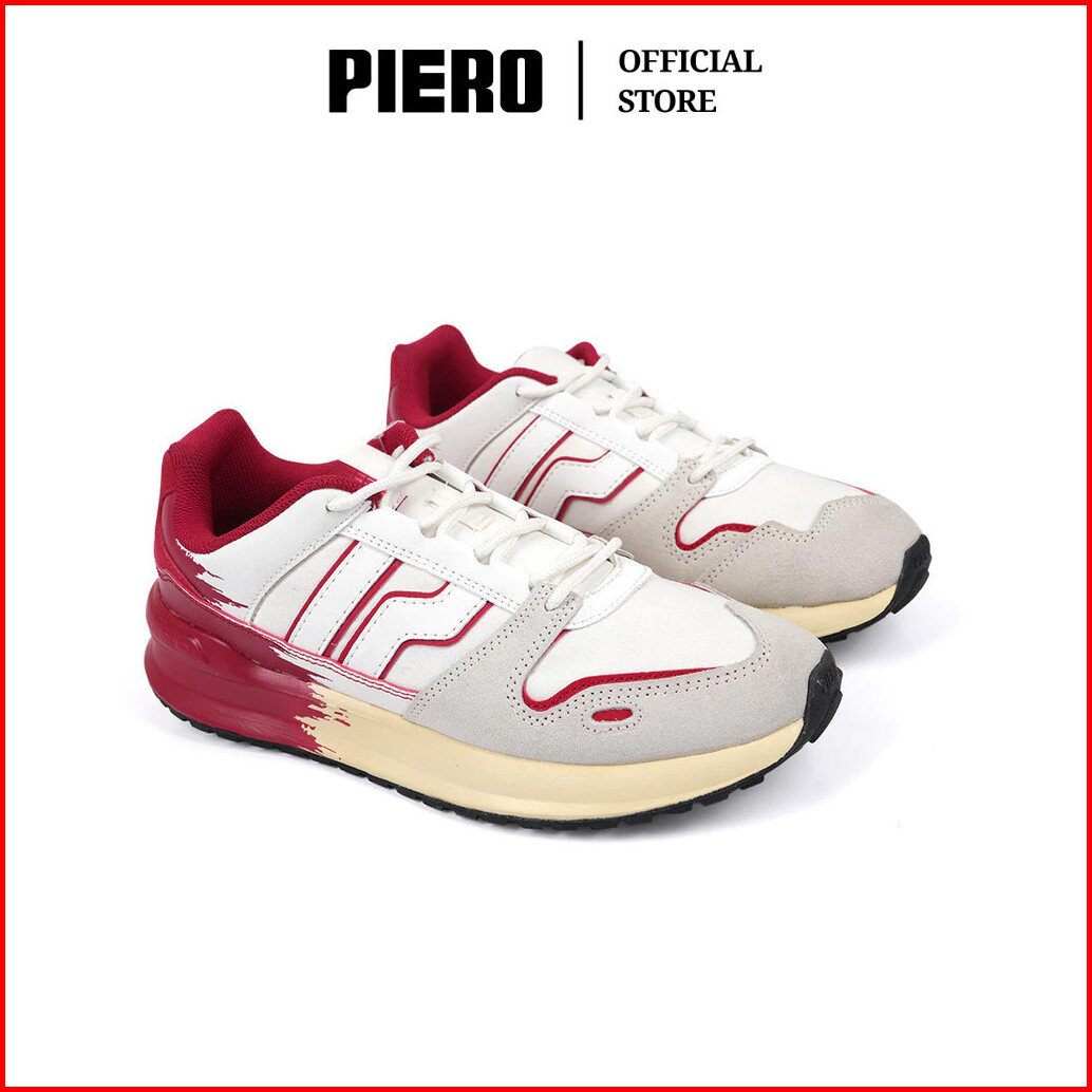 Piero Sepatu Sneakers Pria Jogger 24 Tanah Air White Red Vintage White Pie1000226