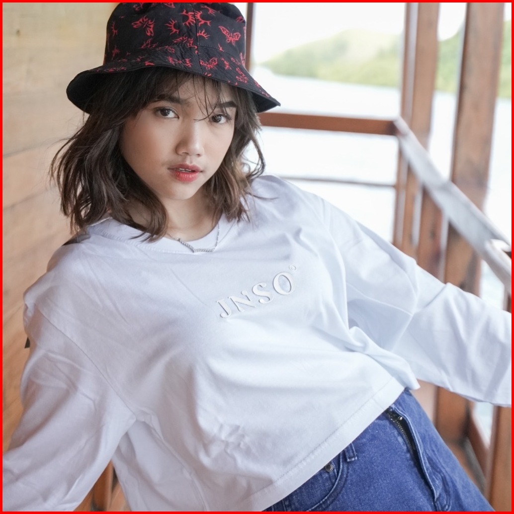 Gratis Hadiah Jiniso T-shirt Kaos Crop Top Oversize Collection Lengan Panjang