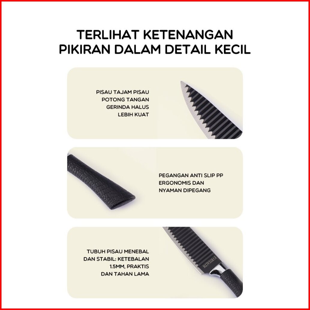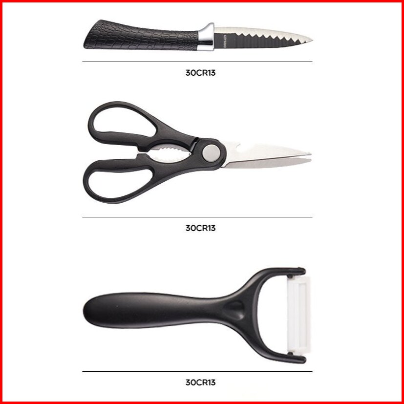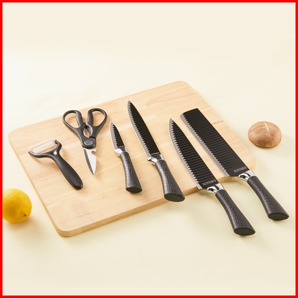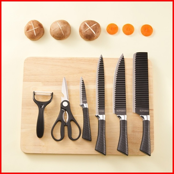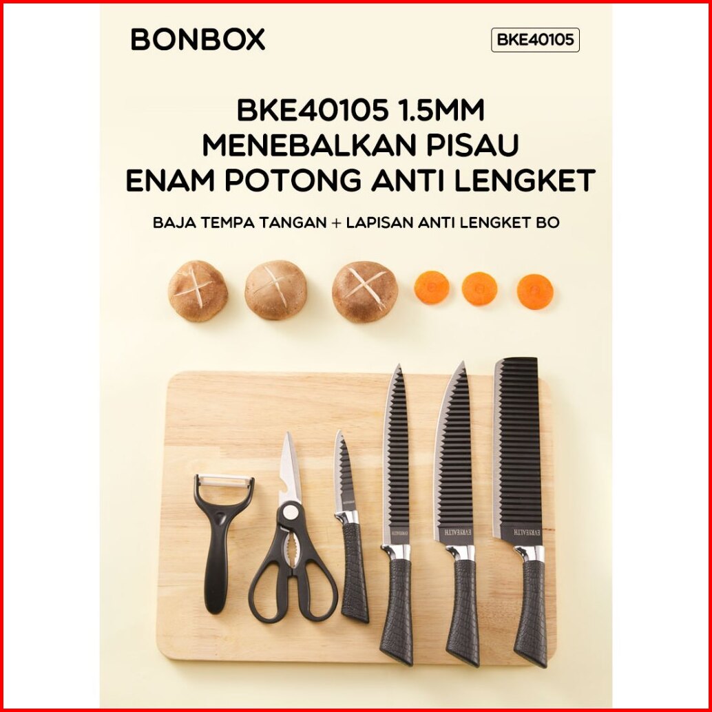 Bonbox Pisau Dapur Set Isi 6pcs Kitchen Knife Set Hitam Pisau Dapur Serbaguna Warna Hitam Bke40105