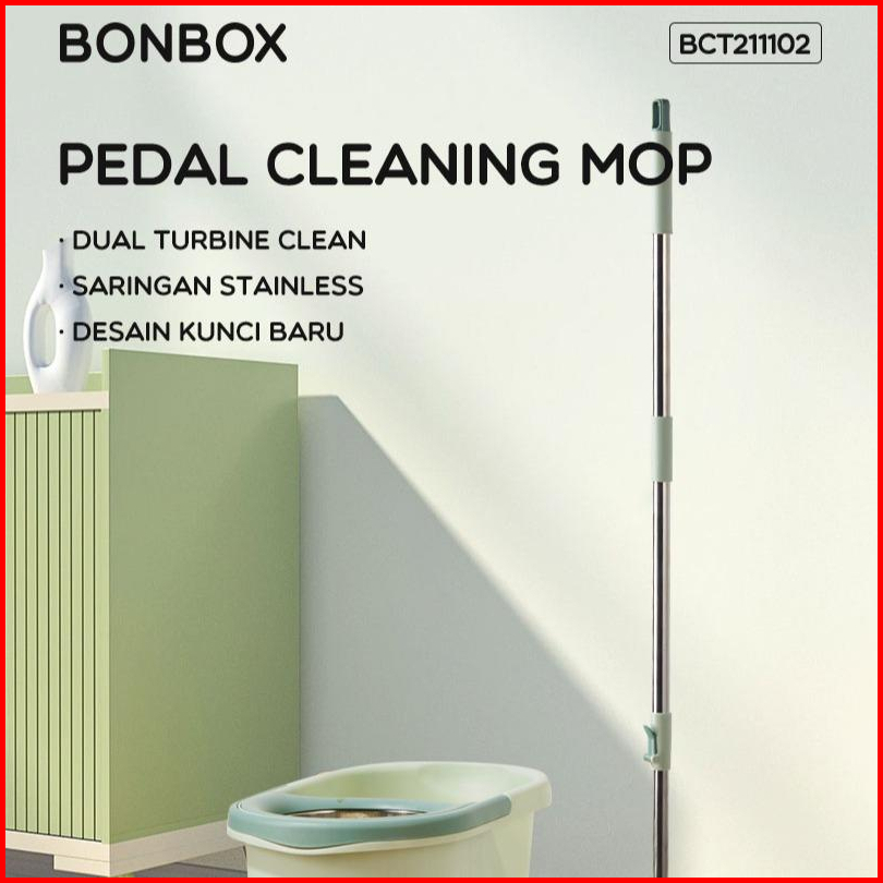 Bonbox Alat Pel Lantai 2 In 1 Spin Mops Dengan Injakan Kaki Otomatis Plus Ember Pel Viral Bct211102