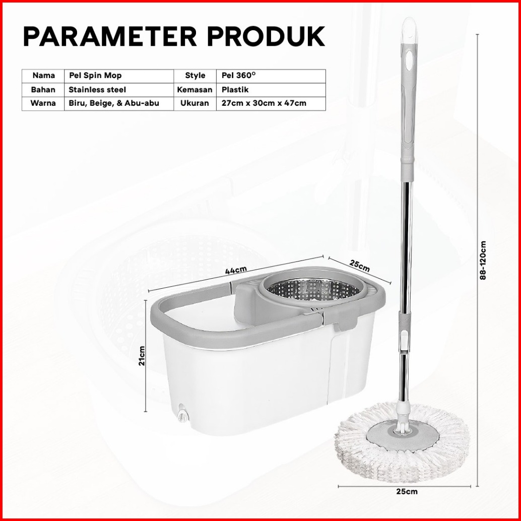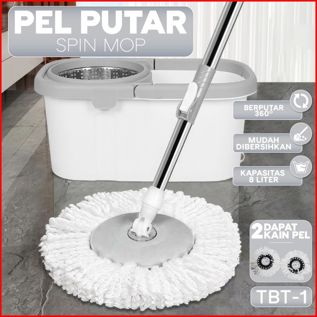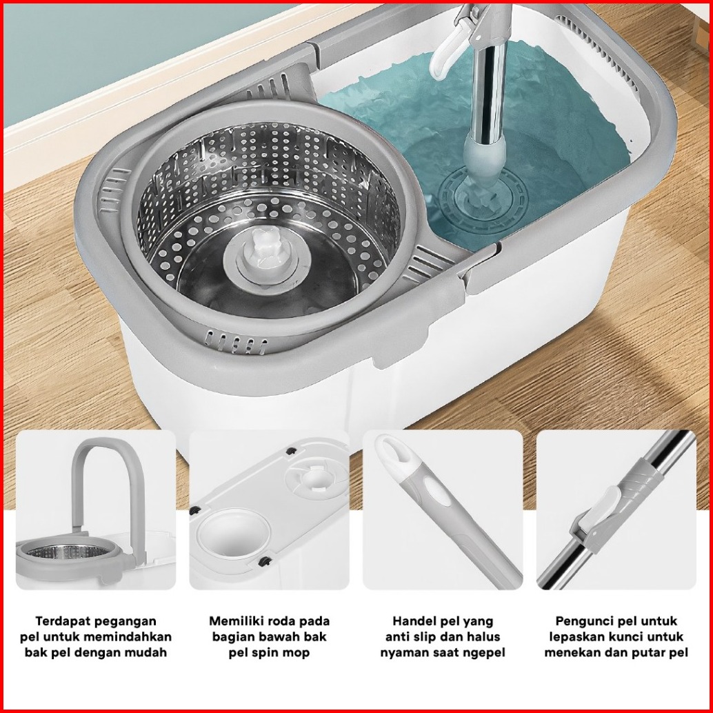 Spin Mop Dengan Pembuangan Air Ultra Mop Alat Pel Lantai Putar Stainless Steel