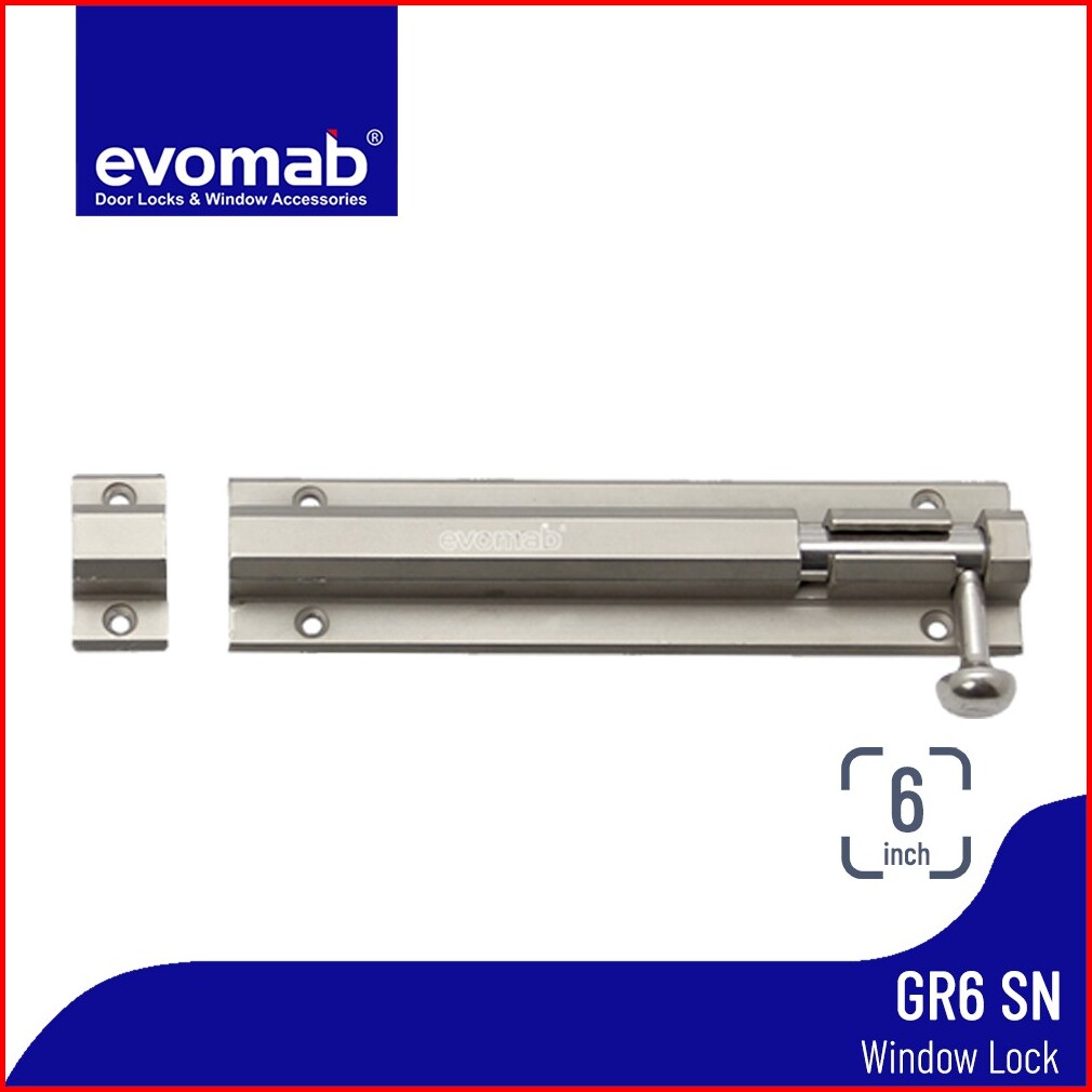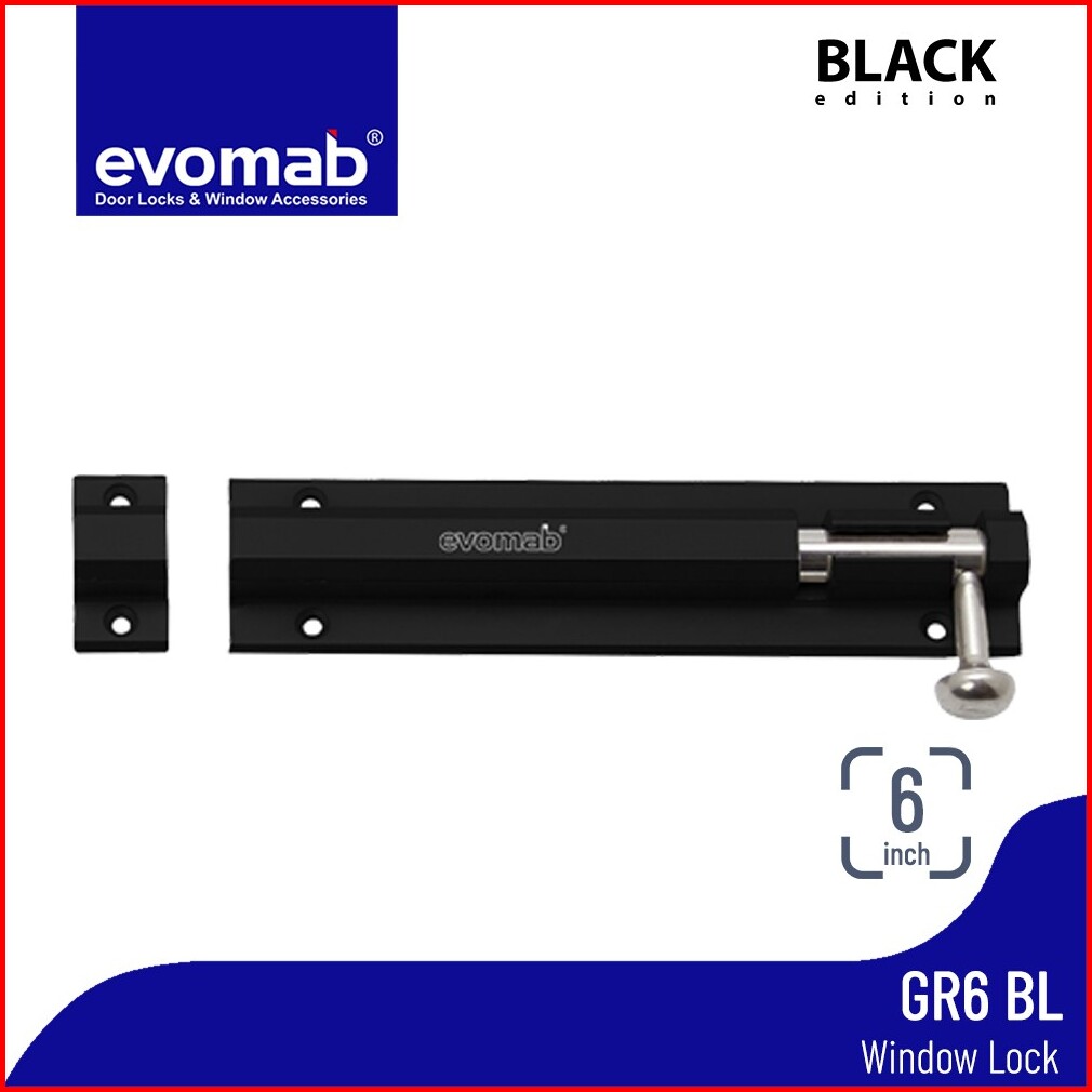 Evomab Grendel Pintu Slot Pintu Window Lock 6 Inch Hitam Dan Silver Gr6