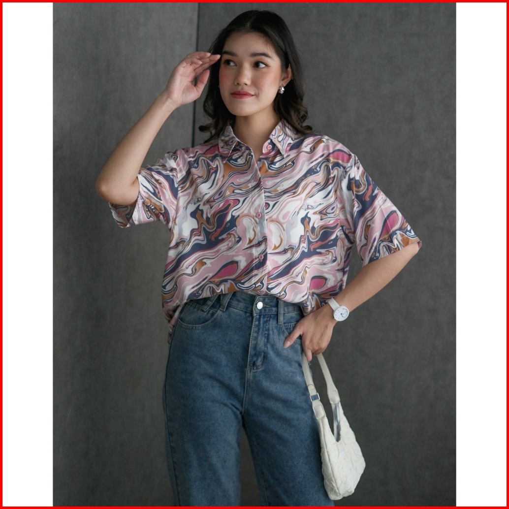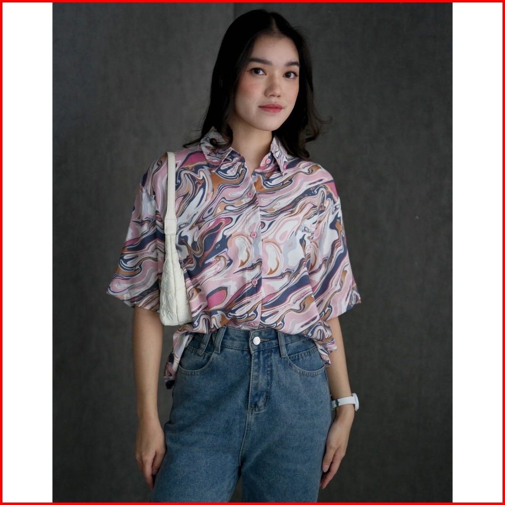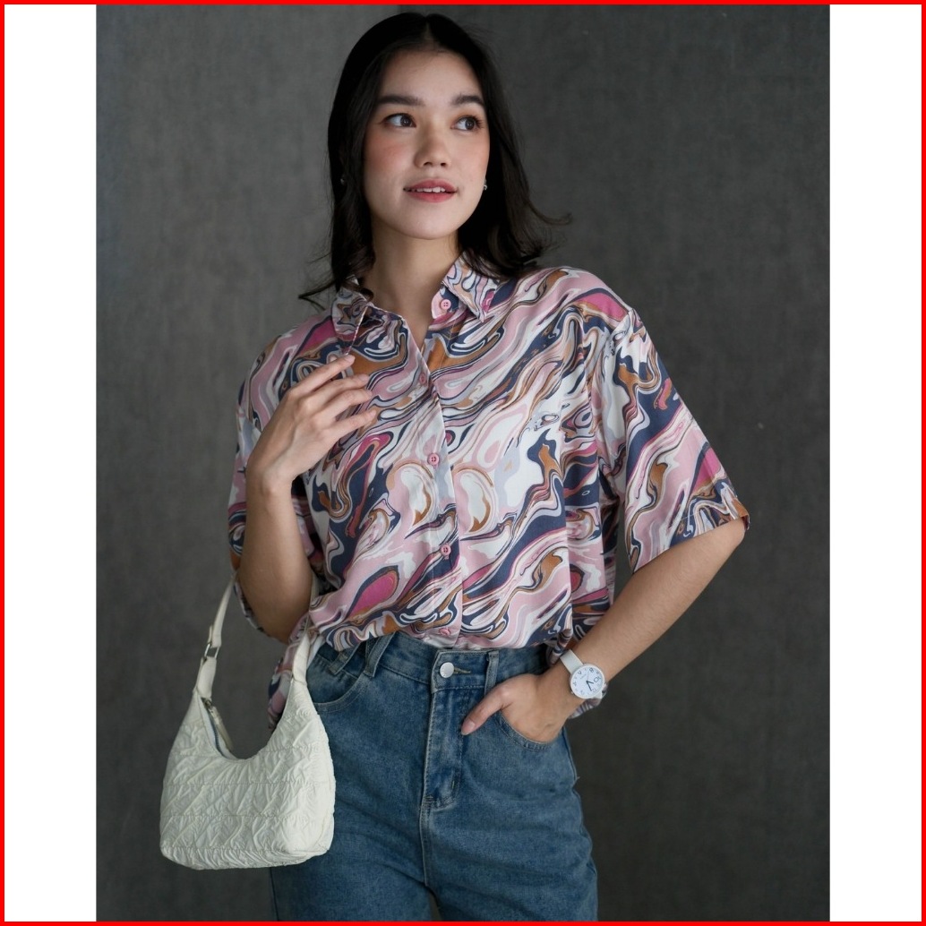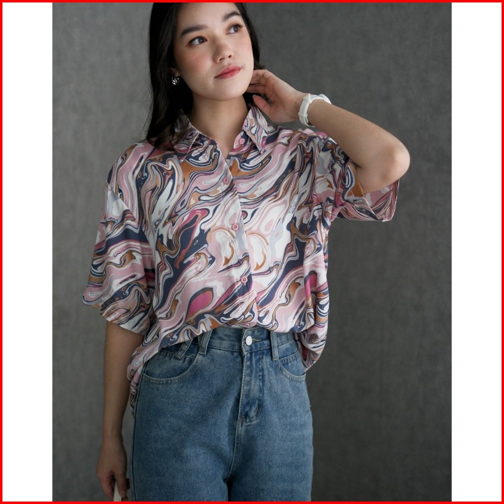 Myrubylicious Marble Shirt Atasan Wanita Kemeja