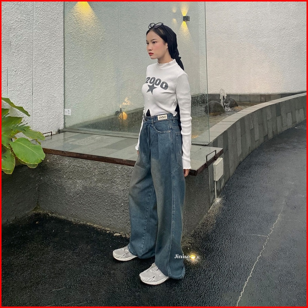 Gratis Hadiah Jiniso - Highwaist Adjustable Super Baggy Hibernation Jeans