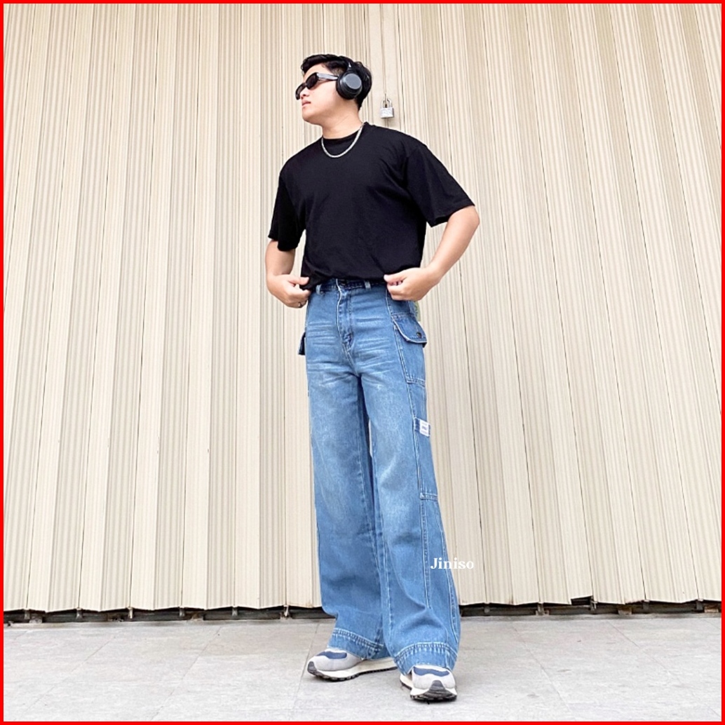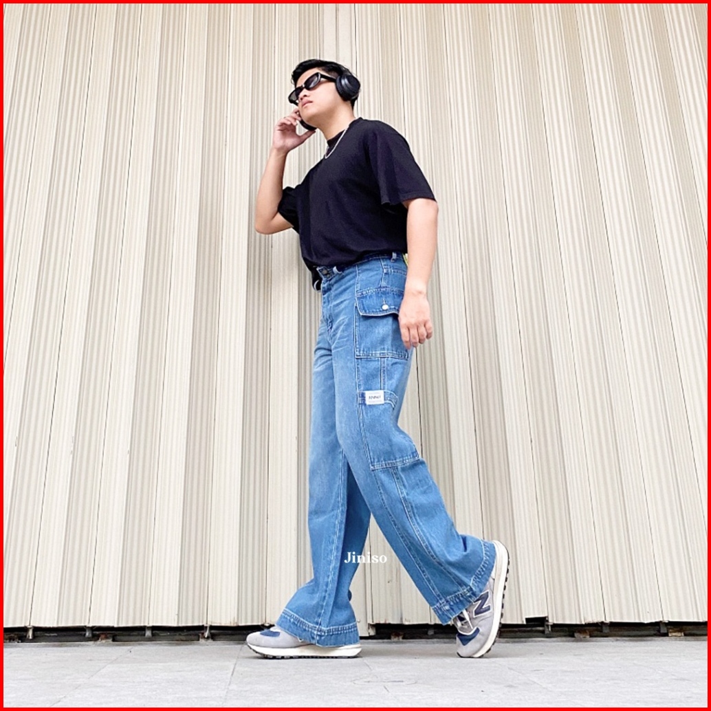 Jiniso Cargo Baggy Denim Jeans Pria 413