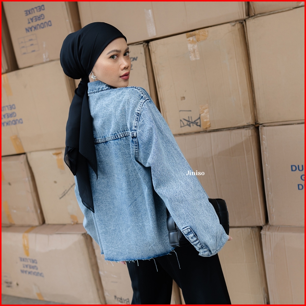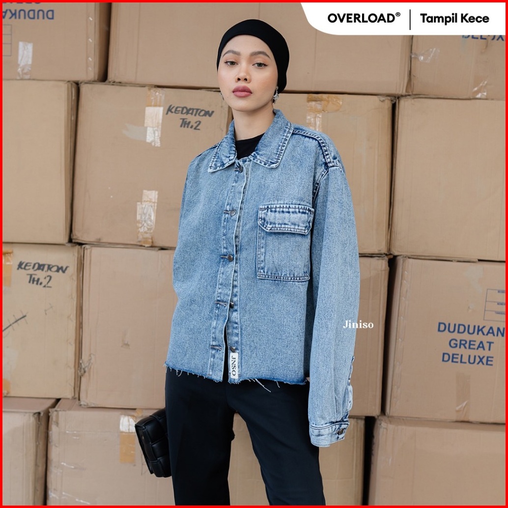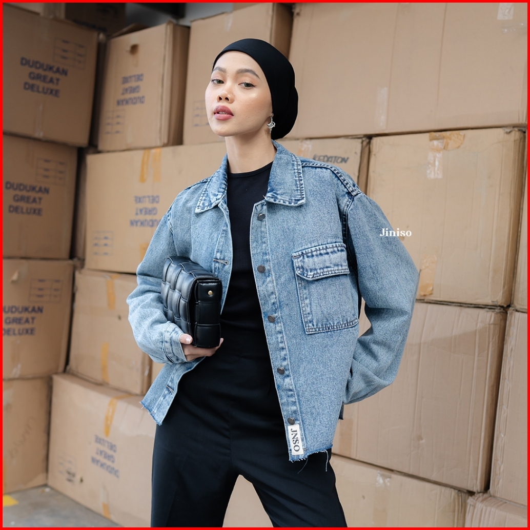 Jiniso Jaket Jeans Oversize Seoul Blue Acid