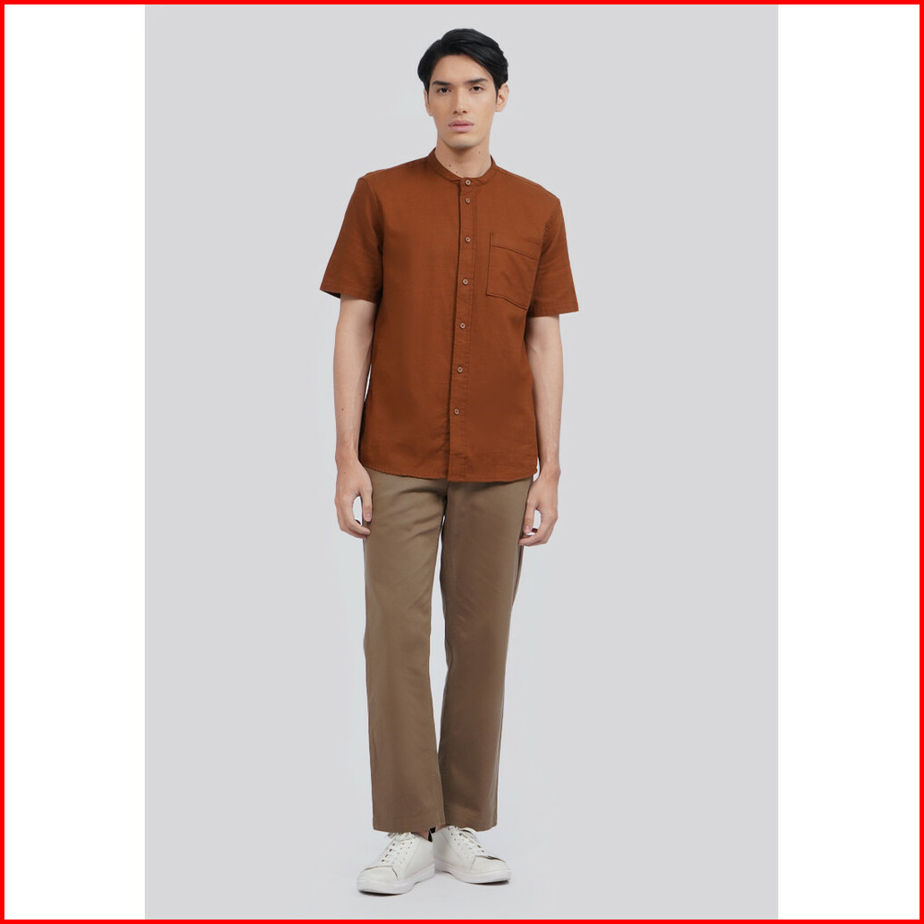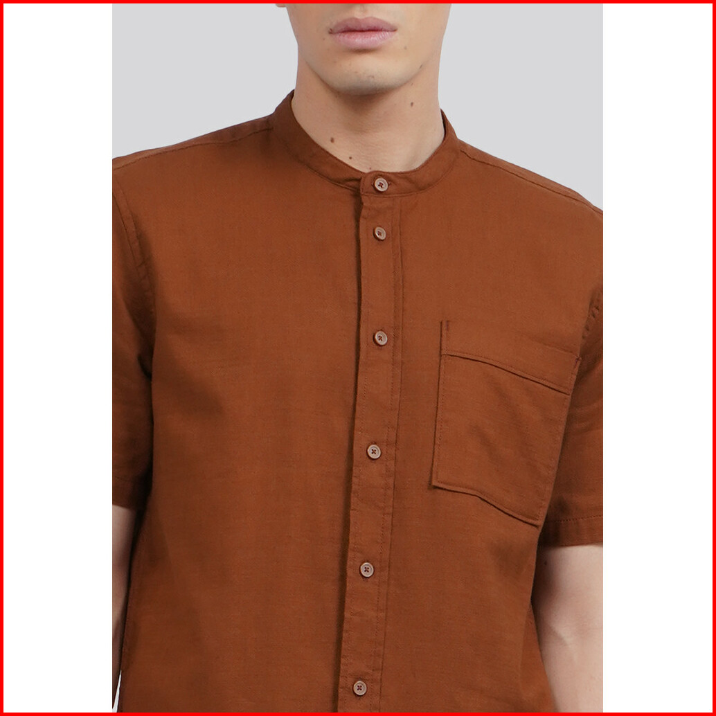 Executive Linen Blend Short Sleeve Koko Shirt Sephia Brown