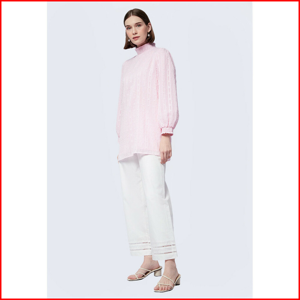 Executive Long Sleeve Smocked Tunic Soft Pink