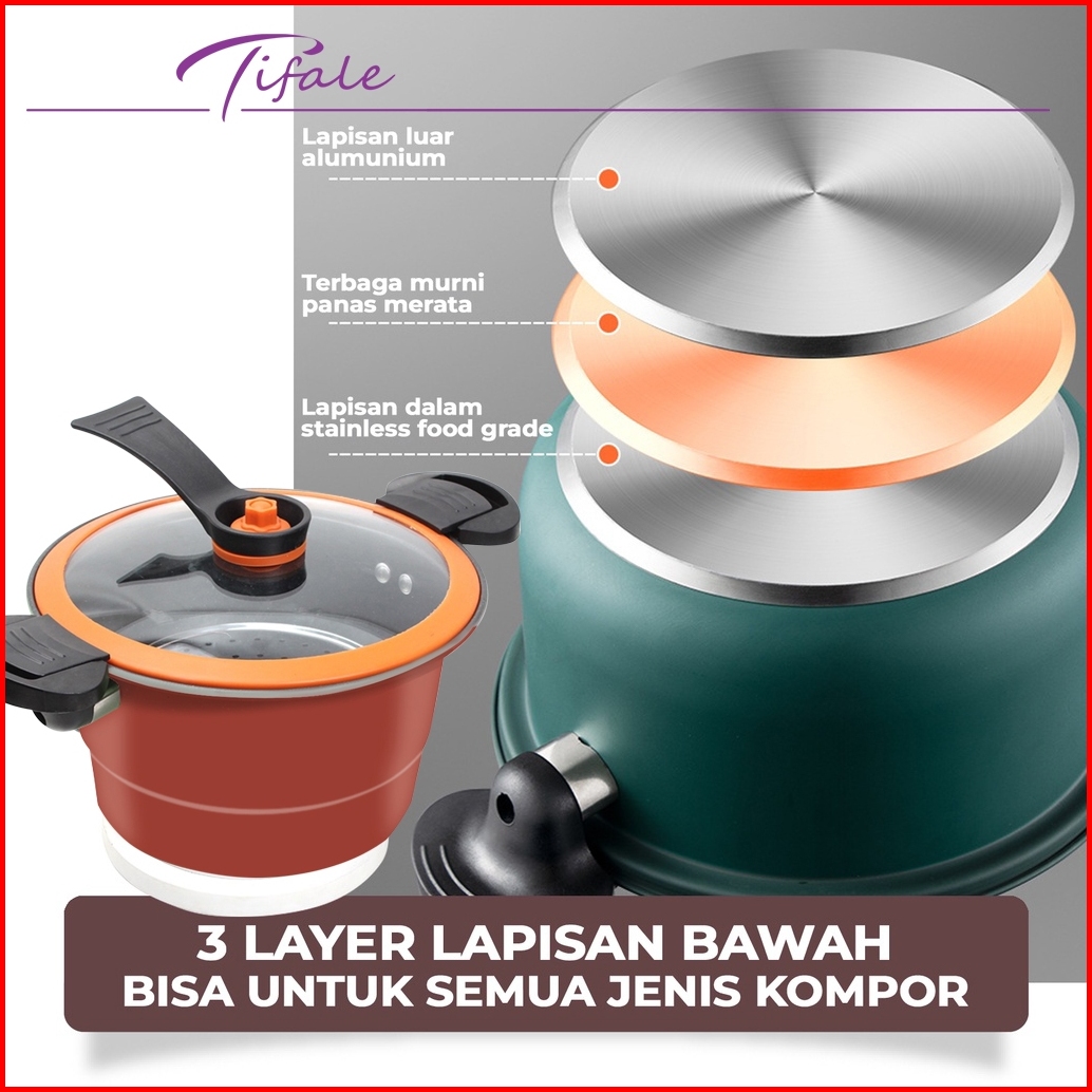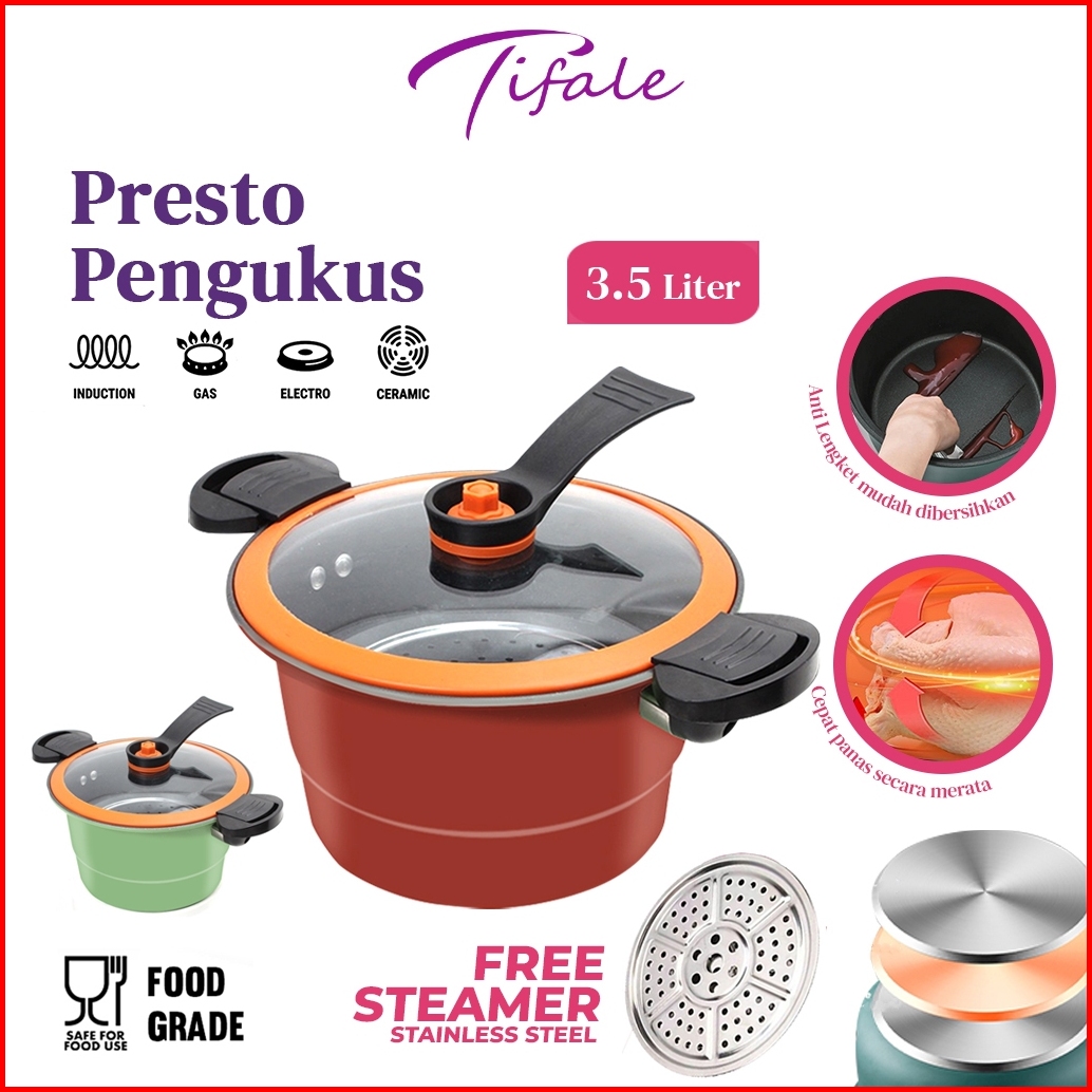 Tifale Panci Presto Teflon Anti Lengket 3 5 Liter Serbaguna Teflon Pressure Cooker Kokoh 3 5l