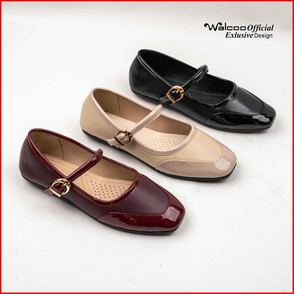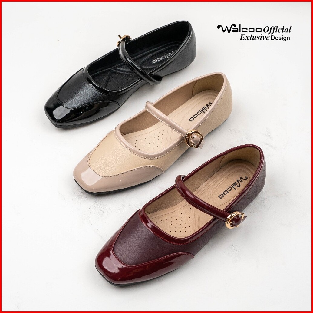 Walcoo Clowy Sepatu Ballet Wanita Lucu Bahan Glossy Mix Sintetis