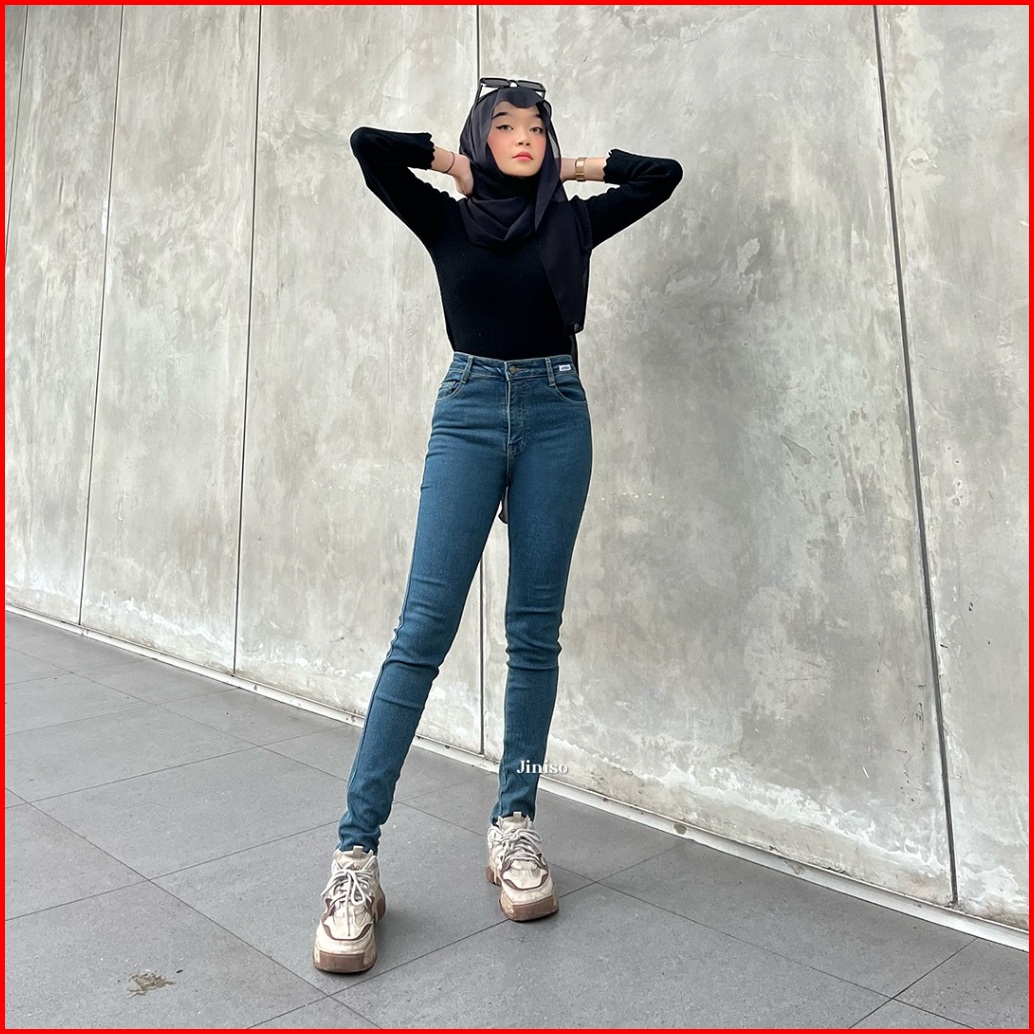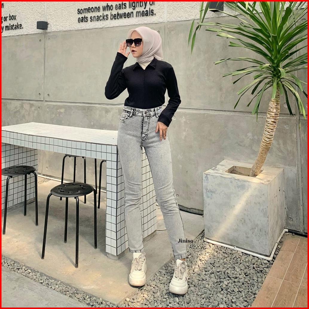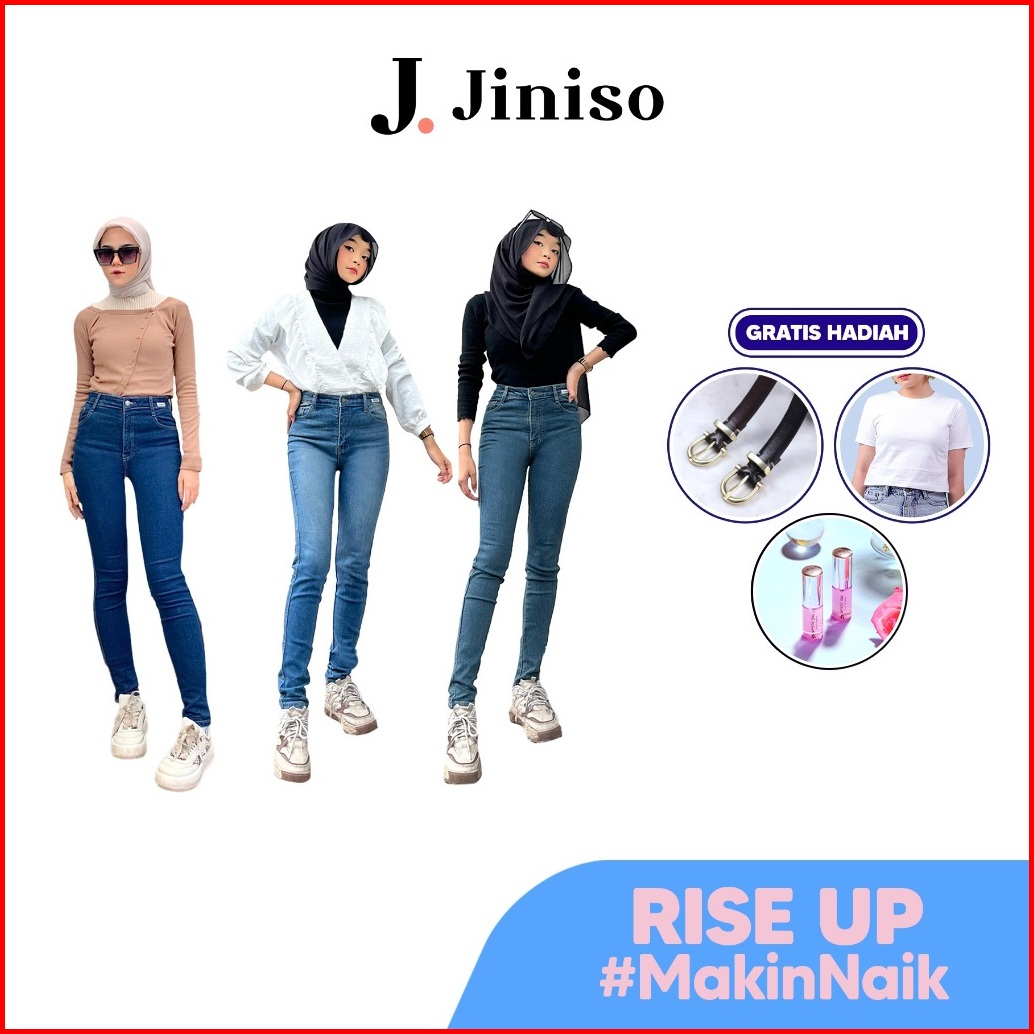 Gratis Hadiah Jiniso - Highwaist Boyfriend Stretch Rise Up Jeans